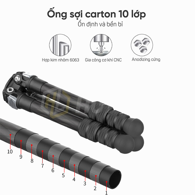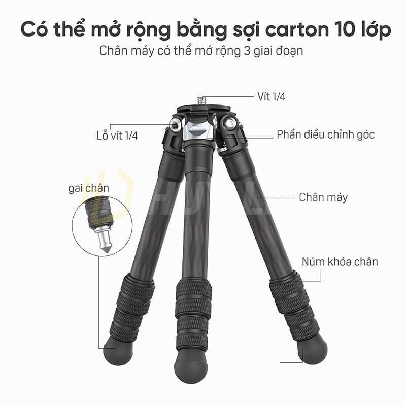 - 8-layer carbon fiber extendable tripod, three-stage extendable carbon fiber tripod