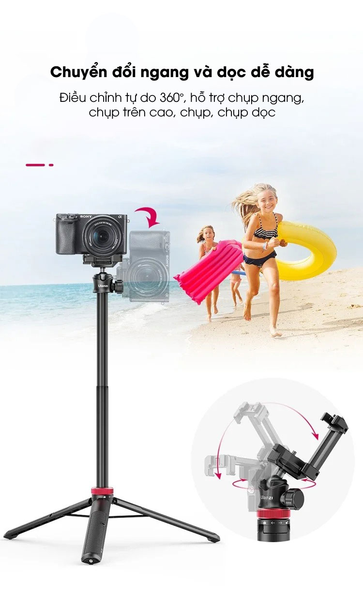 - Đầu bi xoay 360 °: Dễ dàng và thuận tiện để điều chỉnh góc chụp ảnh và chuyển đổi giữa chụp ngang và chụp dọc, hoàn hảo để chụp ảnh toàn cảnh.