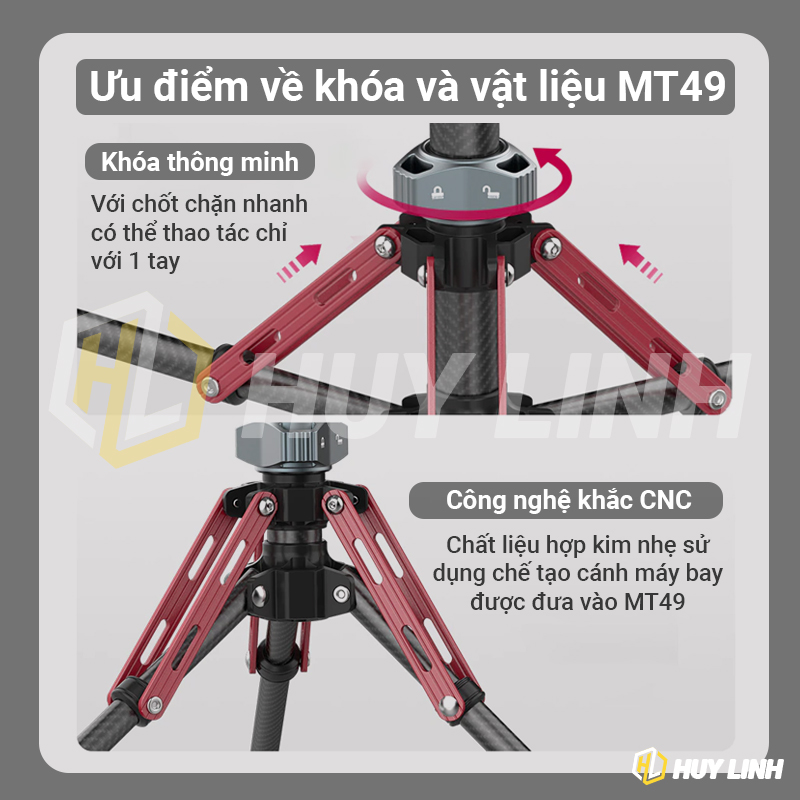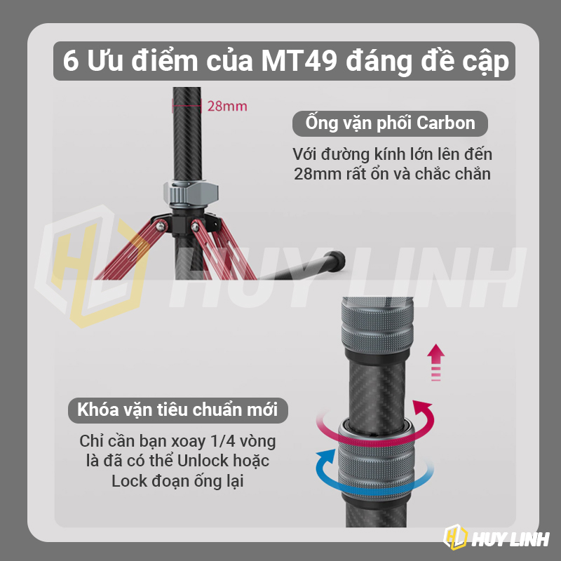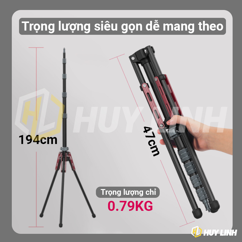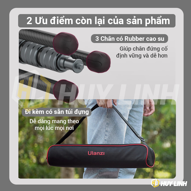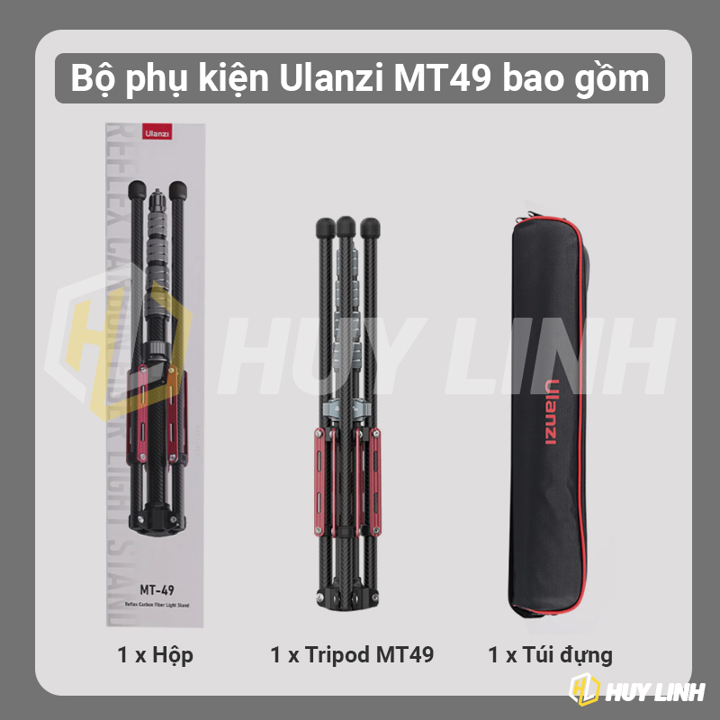 - Ulanzi MT-49 Carbon Fiber Portable Camera Tripod 2m là Dòng Tripod carbon chất lượng nhất từ Ulanzi chỉ 790 gram. Thiết kế đẹp, gọn , nhẹ chỉ 47cm kéo dài đến 197cm. Mang di chuyển tiện lợi.