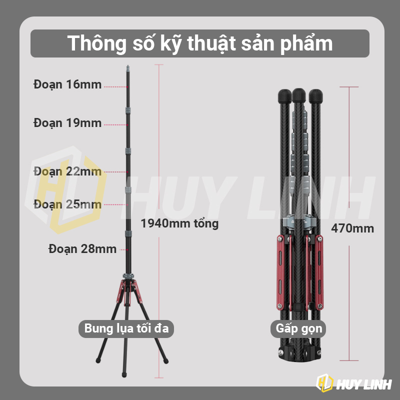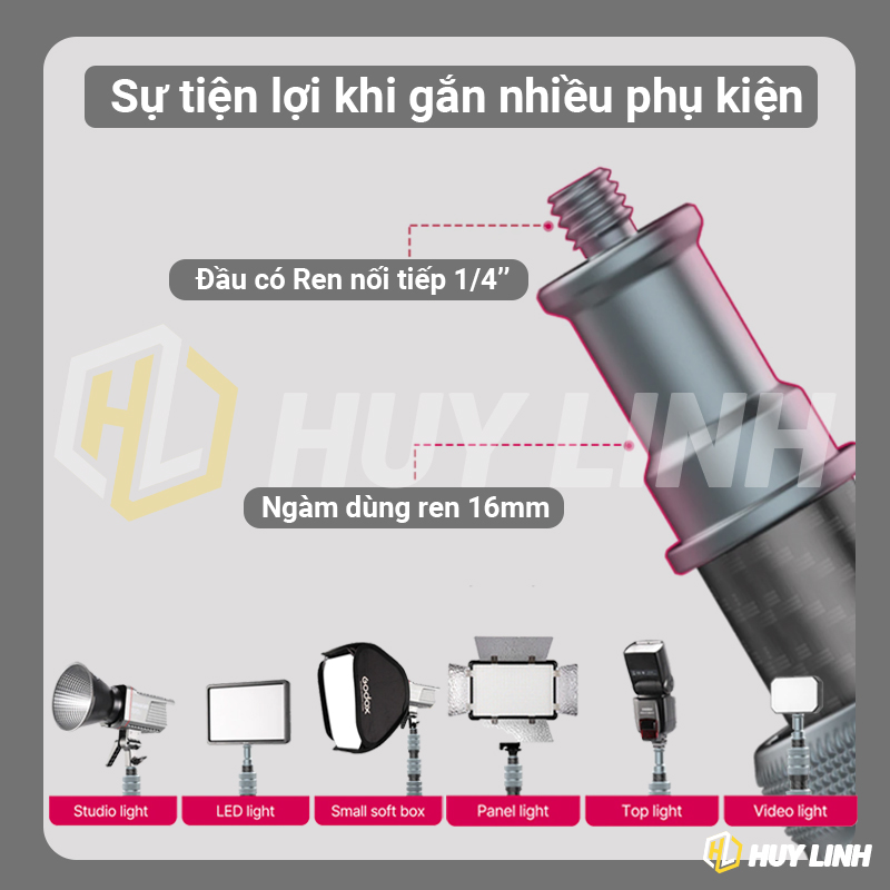 - Dùng làm chân đèn studio kết hợp đèn flash + softbox dù tản sáng, hoặc dùng cho Camera chụp ảnh phong cảnh, quay video ... đa năng.