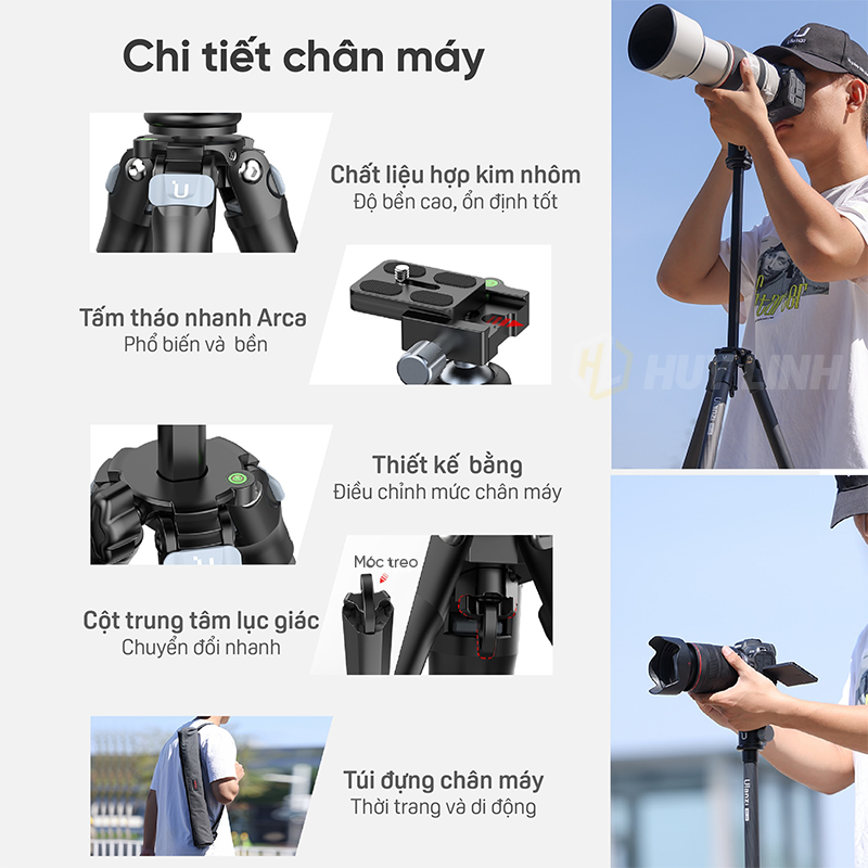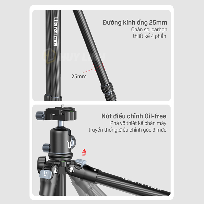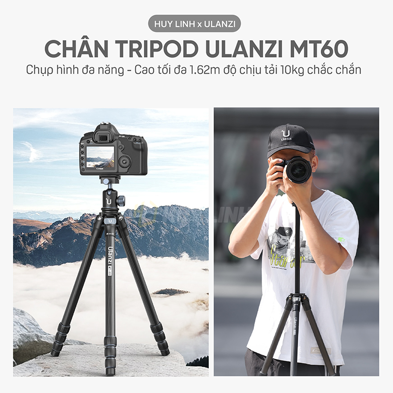 - Chân máy du lịch nhẹ bằng sợi carbon Ulanzi MT-60.Kết cấu sợi carbon: Nhẹ hơn và mạnh mẽ hơn, người bạn đồng hành đắc lực cho chuyến du lịch của bạn.