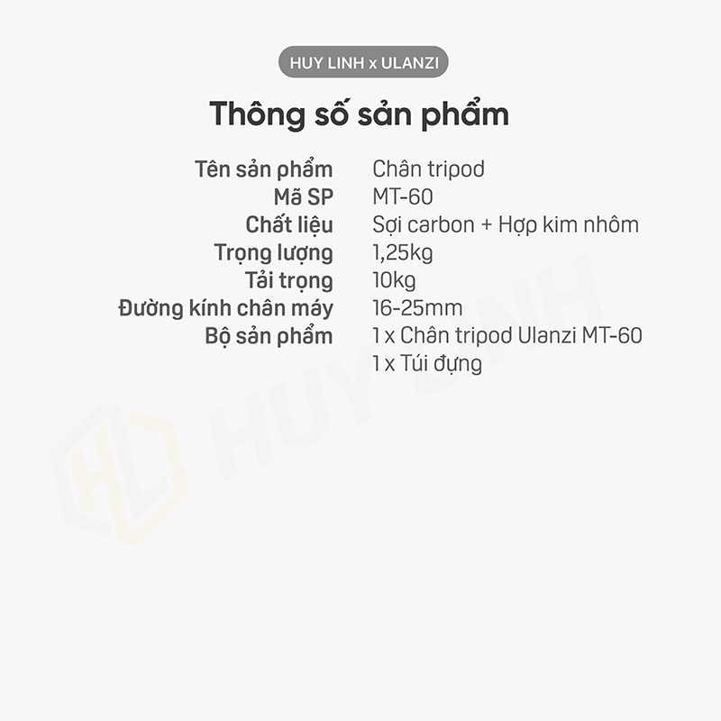 Các combo ưu đãi mua tripod Ulanzi MT60 tại Huy Linh liệt kê như sau: