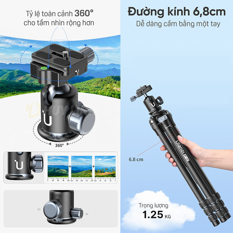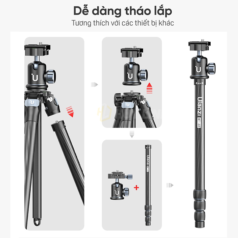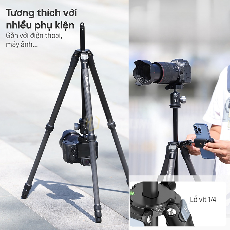- Kít 3: Tripod Ulanzi MT60 + Ballhead U190 + Túi Ulanzi PB008 tặng Urrig R002
