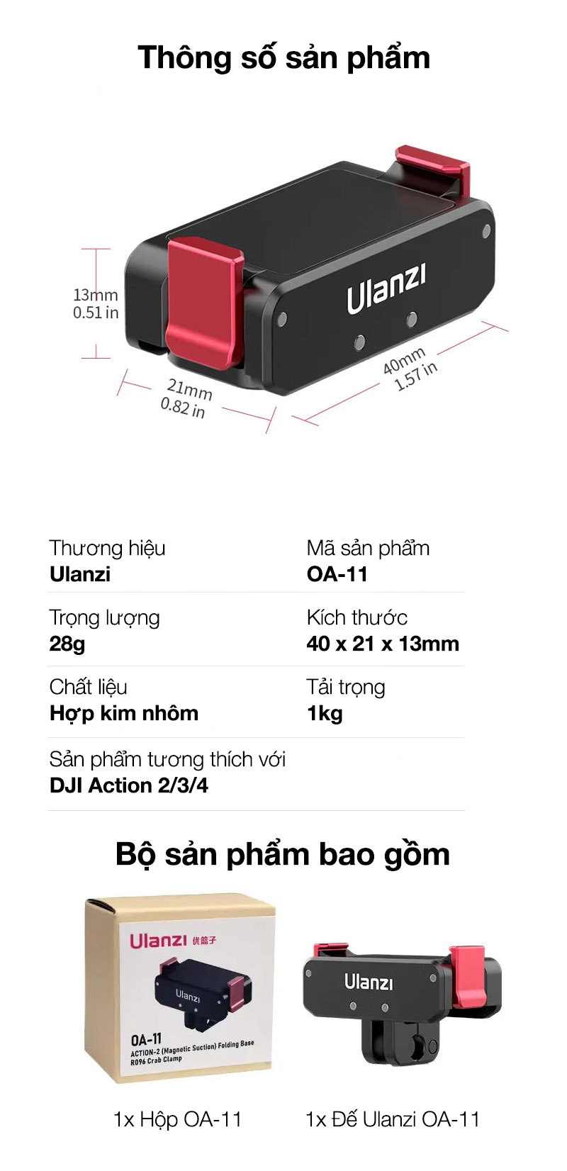 - Sản phẩm tương thích với: DJI Action 2/3/4