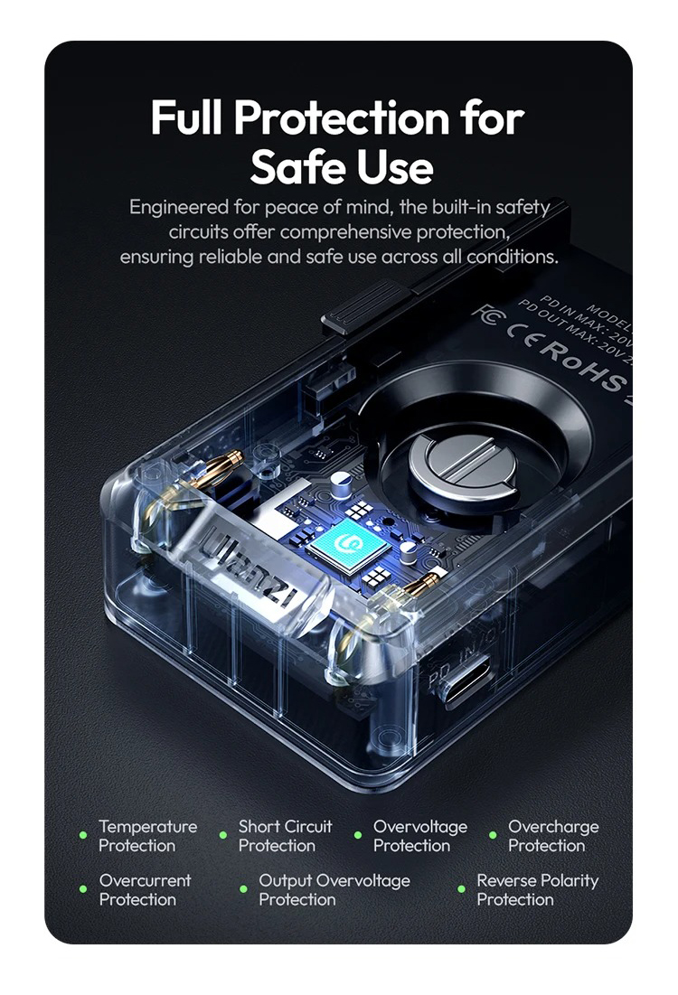 + PD: 5V/3A, 9V/2A, 12V/2A, 15V/2A, 20V/1.5A (30W Max)
