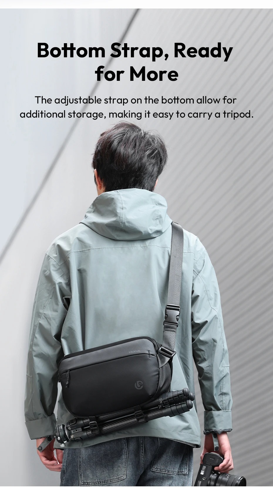 - Dây đeo có thể điều chỉnh ở phía dưới cung cấp thêm không gian lưu trữ và giúp việc vận chuyển chân máy dễ dàng hơn.