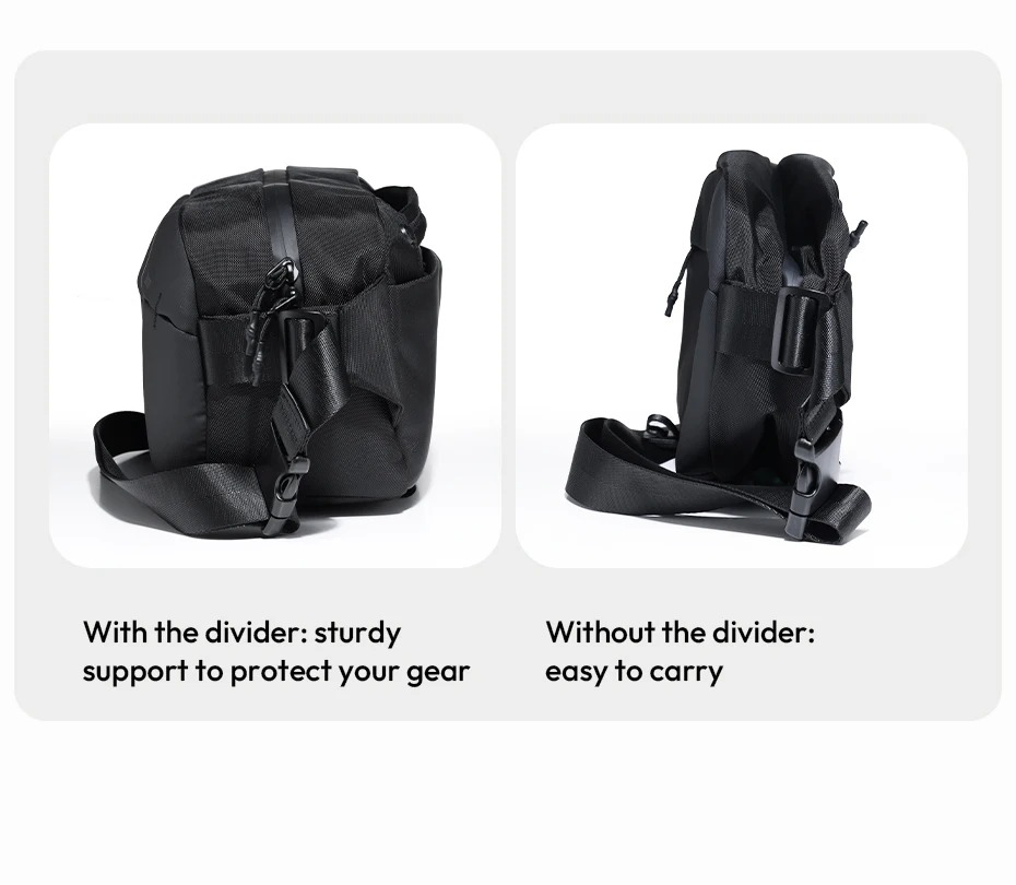 - Với vách ngăn có thể tháo rời, bạn có thể biến chiếc túi thành túi đựng máy ảnh và túi giải trí chỉ trong vài giây.