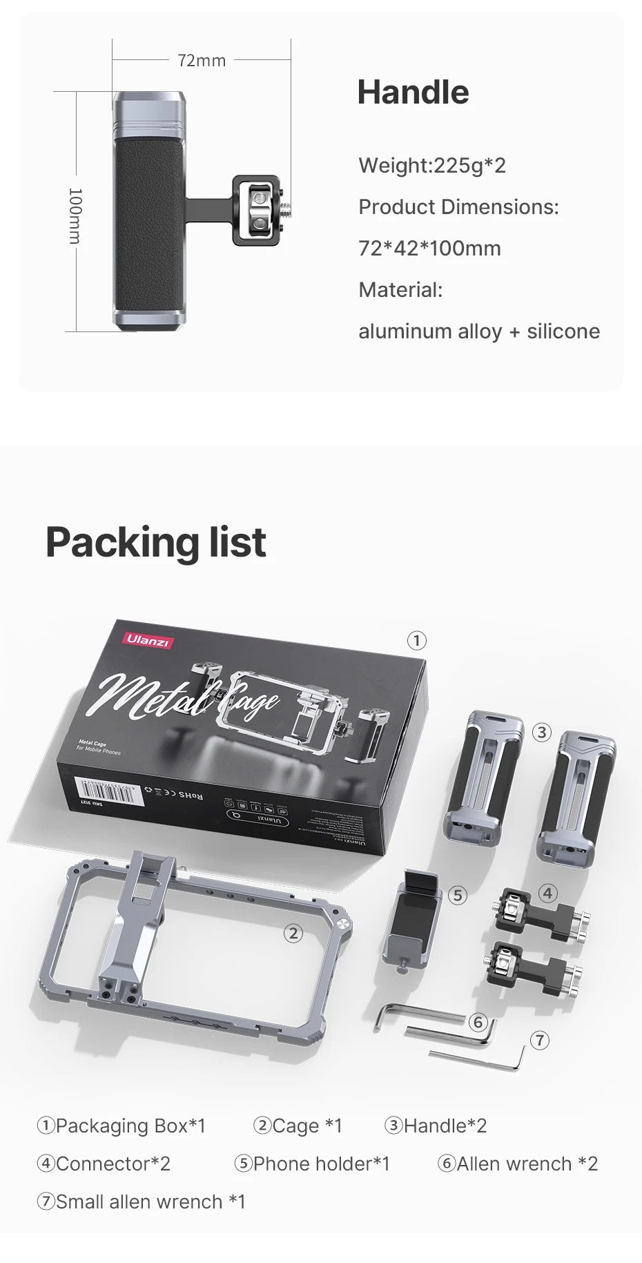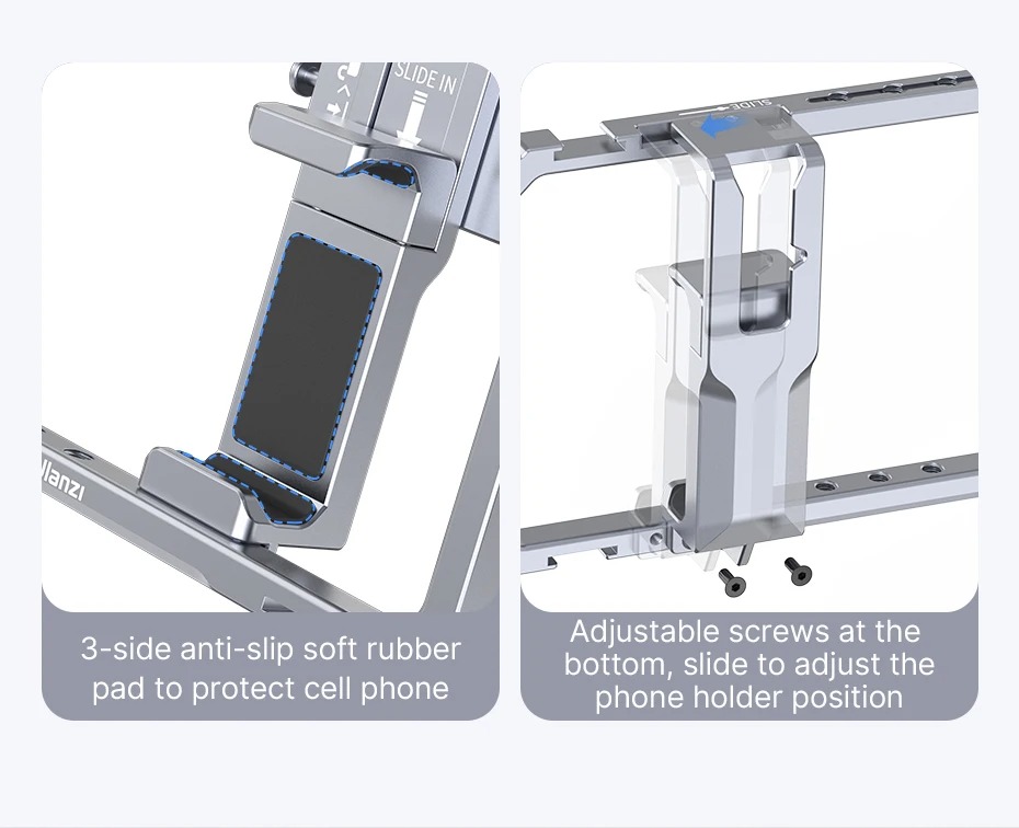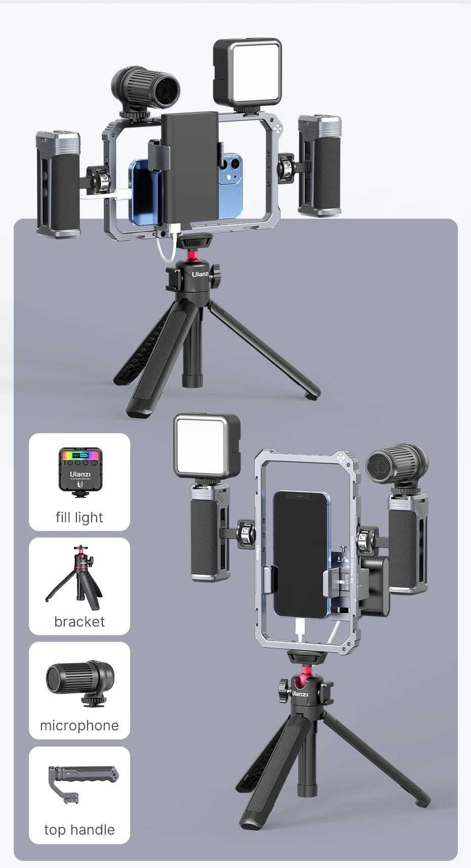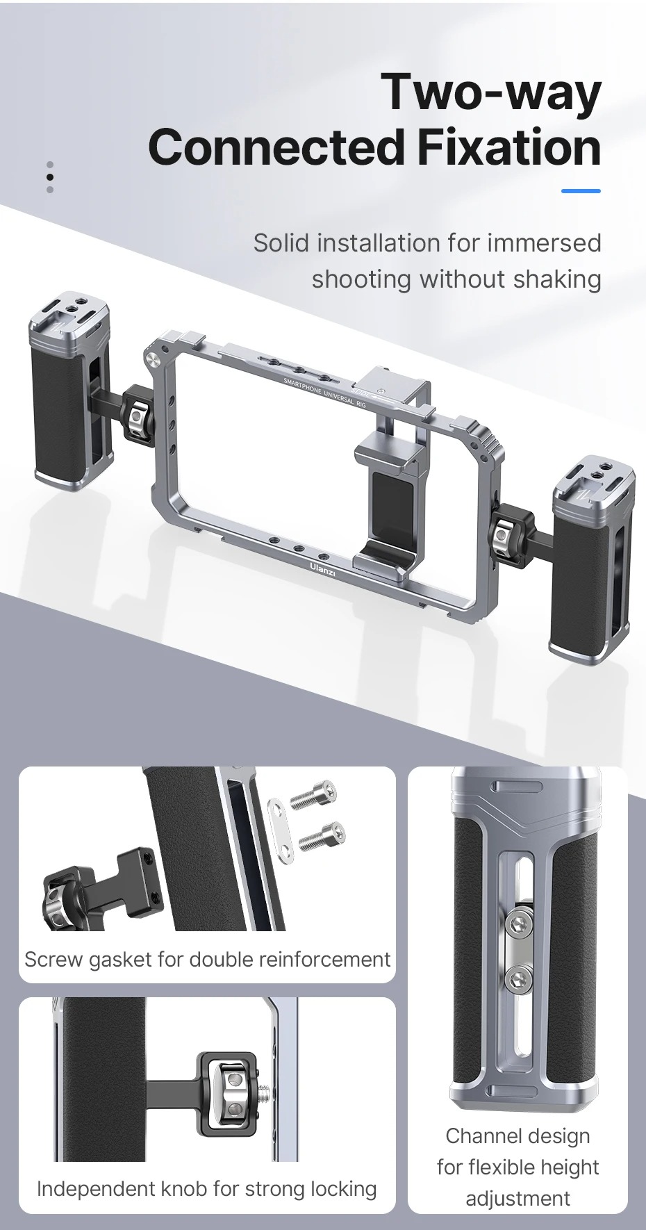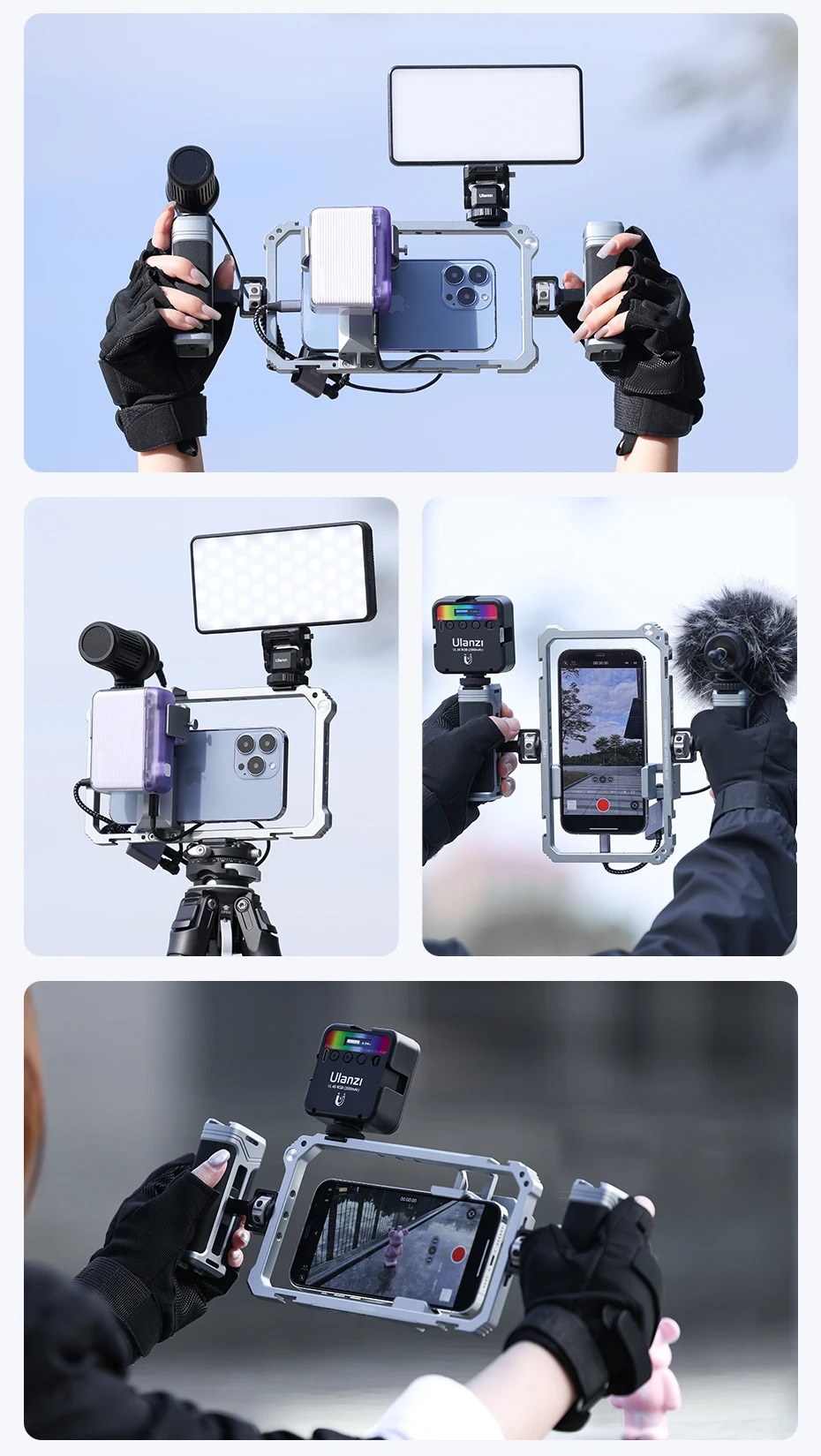 - Thiết kế tinh tế, bền chắc với chất liệu hợp kim nhôm đảm bảo tính thẩm mỹ và hỗ trợ tối đa sự tiện lợi khi quay phim bằng điện thoại.