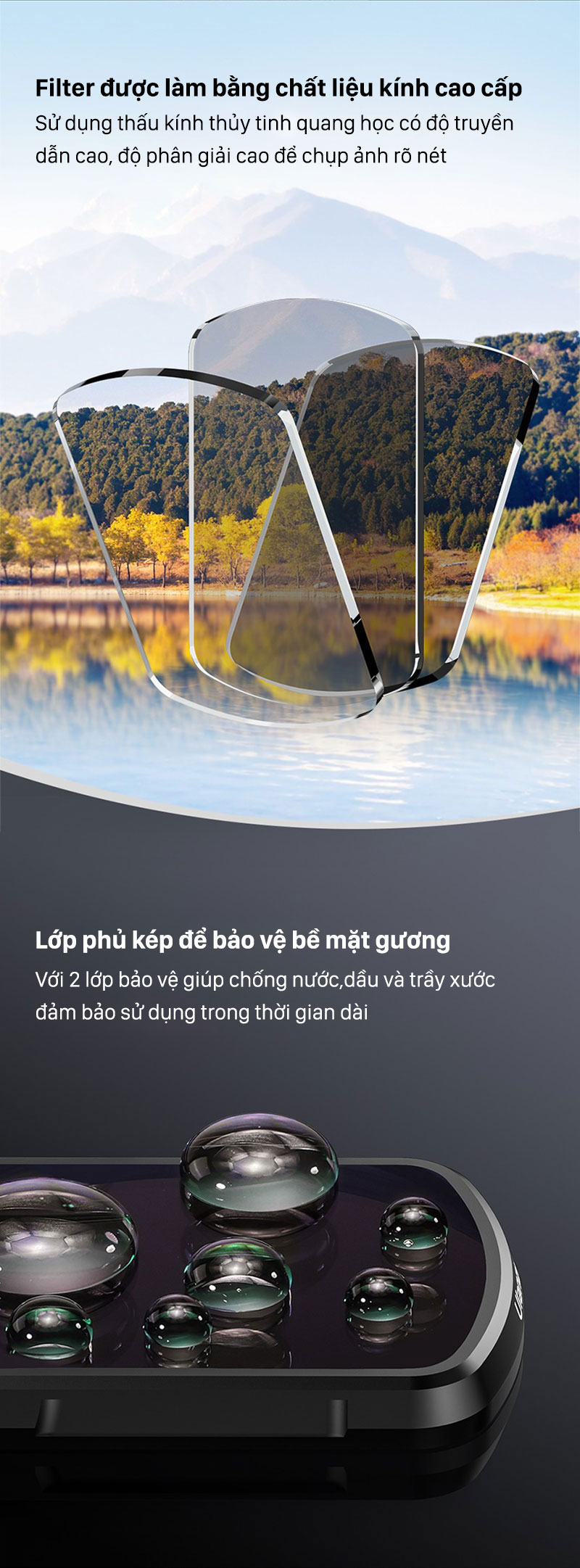 - Filter được làm bằng chất liệu kính cao cấp, hiệu ứng như nhìn qua mắt thường.