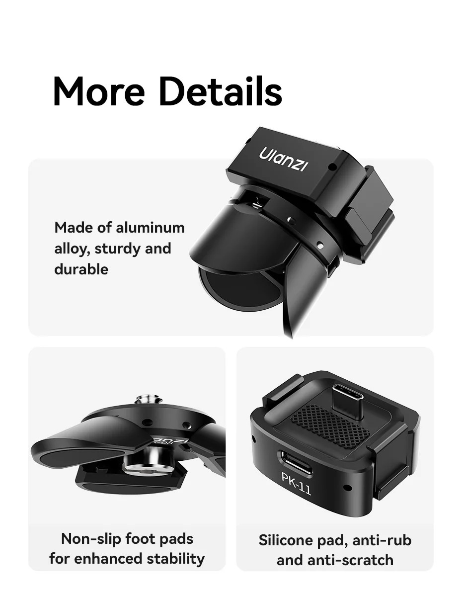- Mở ra như chân máy và gập lại như tay cầm, dễ dàng chuyển đổi chế độ cho mọi cảnh quay.