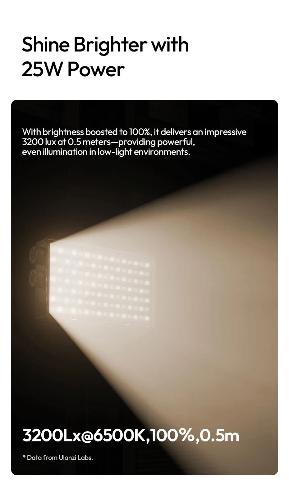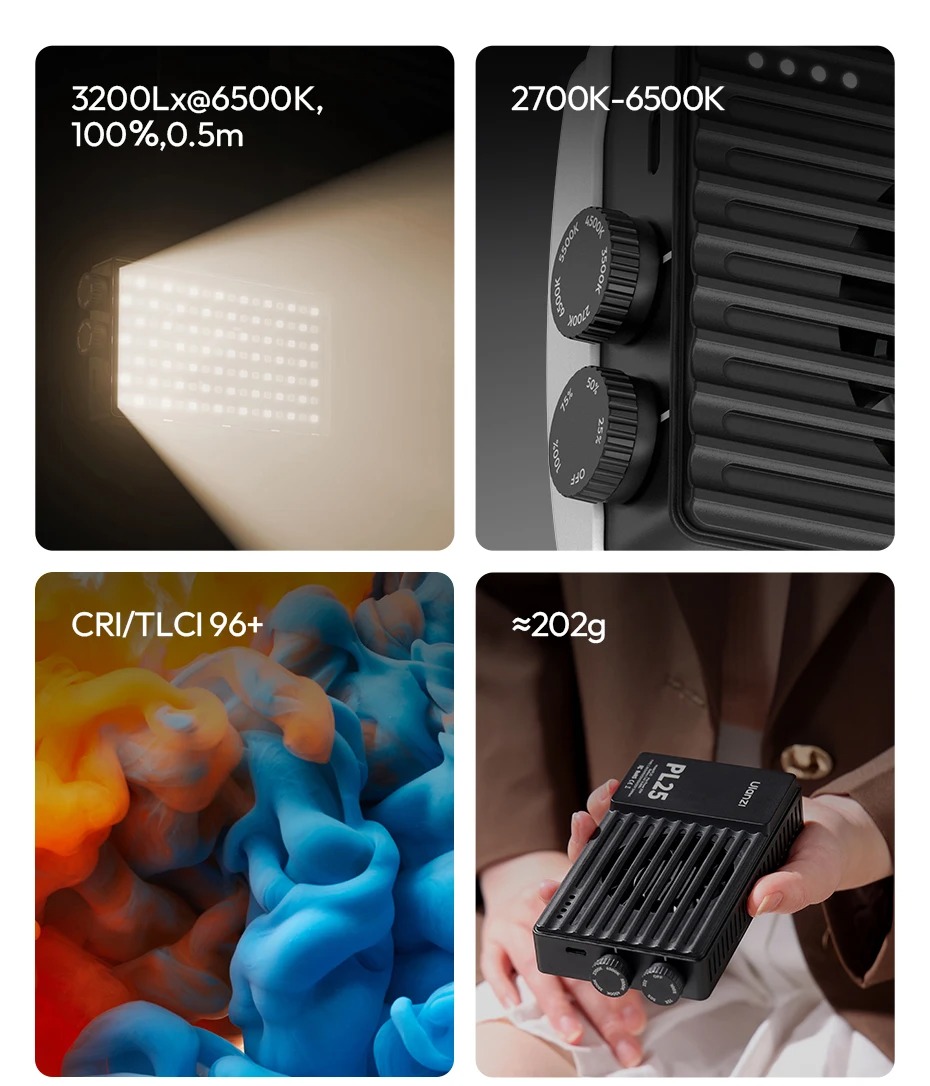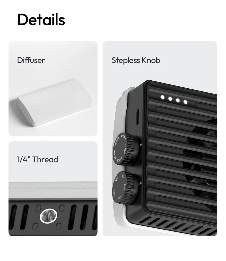 - Thiết kế cầm tay, gọn nhẹ nhưng công suất lên tới 25W đáp ứng nhu cầu quay chụp trong nhà và ngoại cảnh.