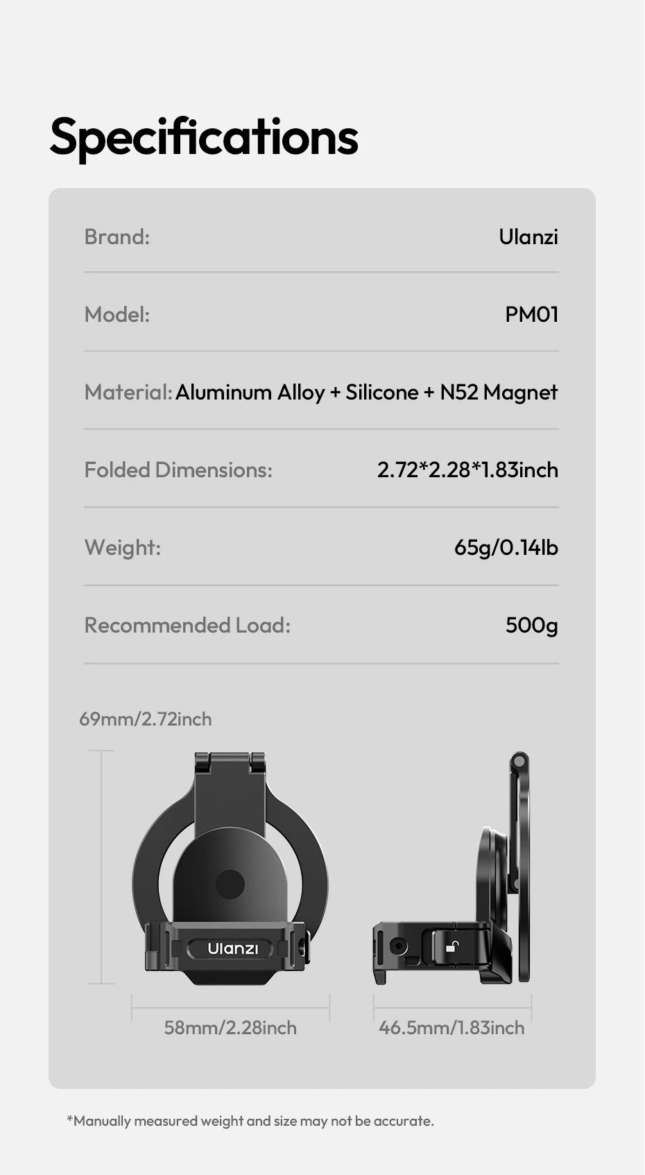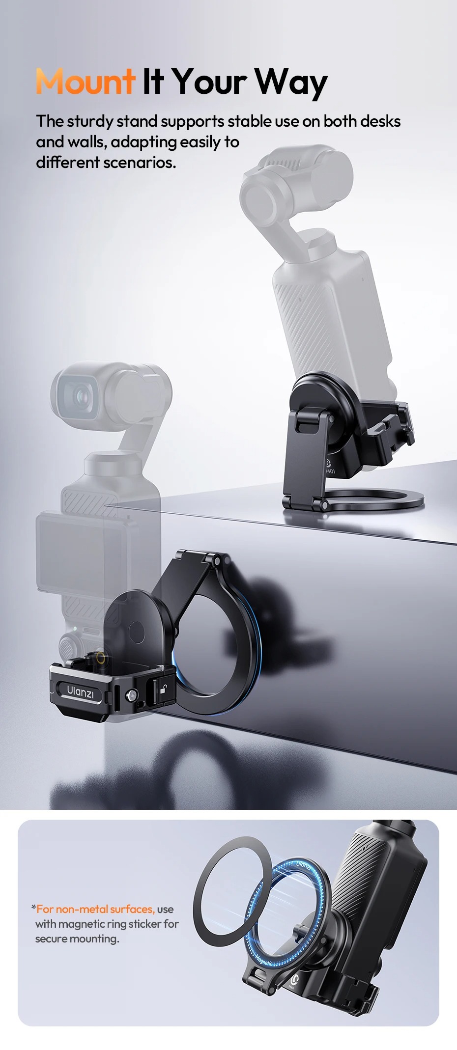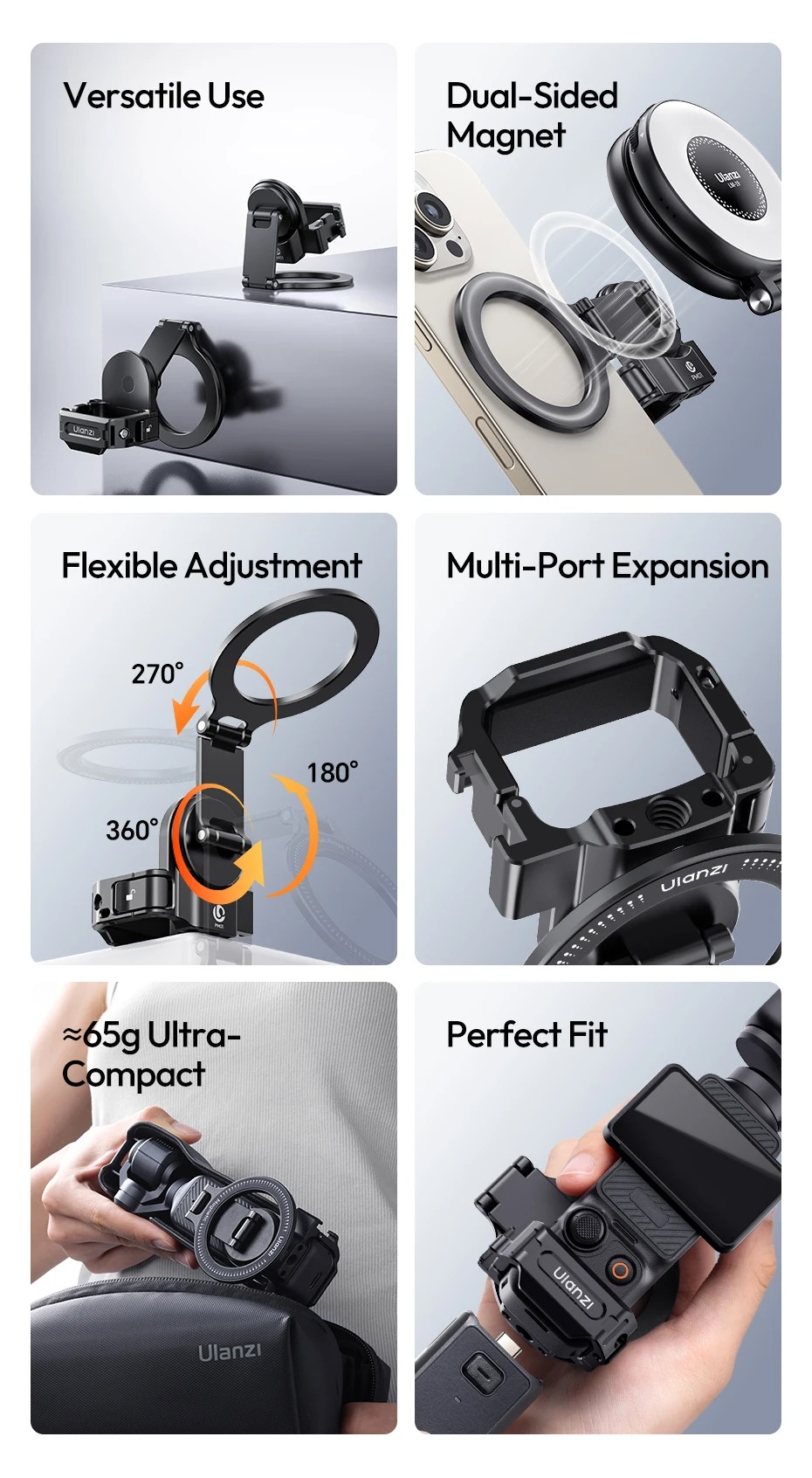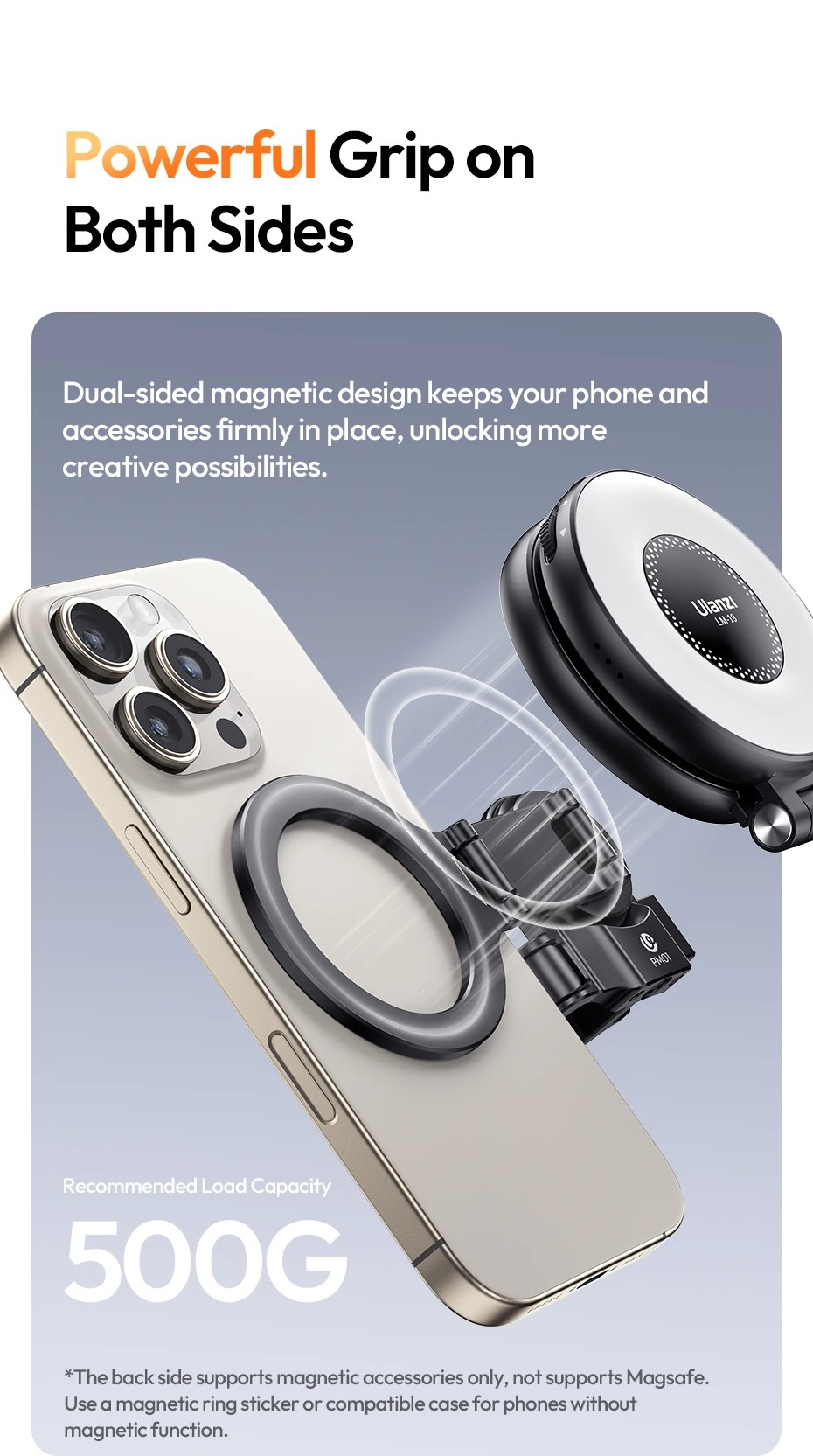 - Thiết kế từ tính hai mặt giúp giữ điện thoại và phụ kiện của bạn cố định chắc chắn, mở khóa nhiều khả năng sáng tạo hơn.