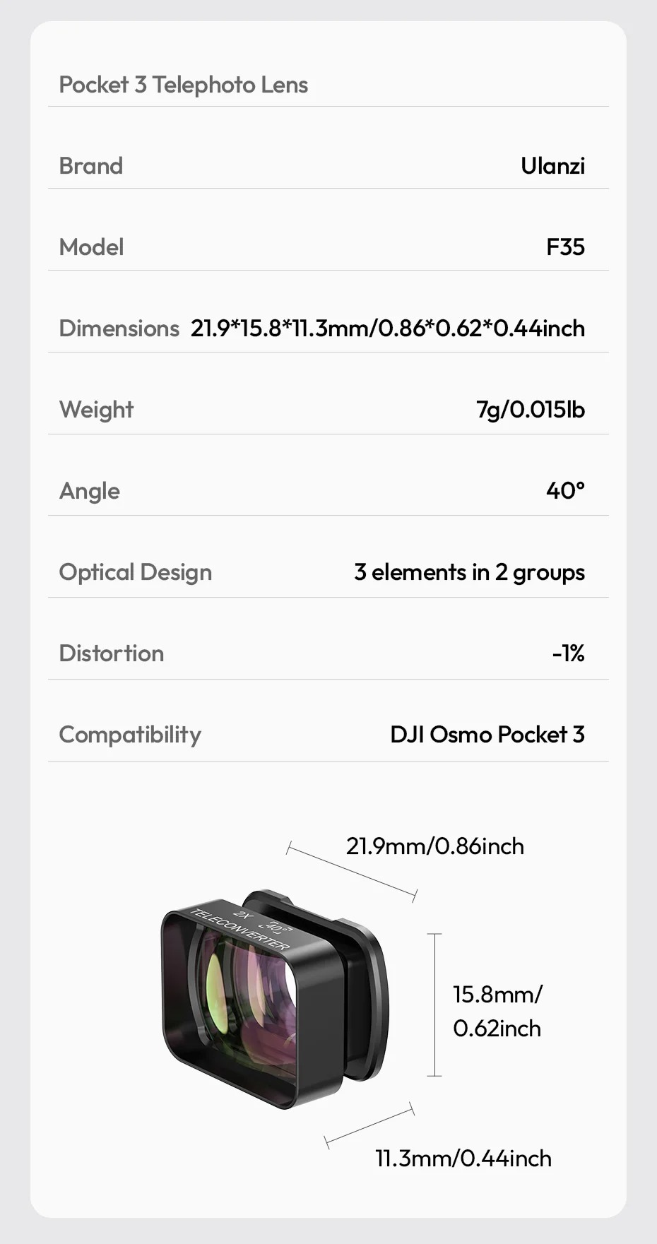 - Mã sản phẩm: F35 Pocket 3 Telephoto Lens