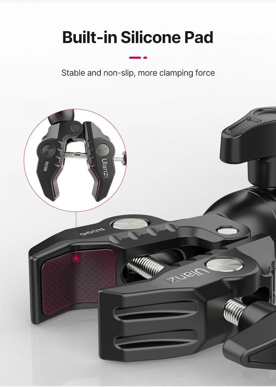 - Ổn định và không trơn trượt: Cả hai kẹp đều được bọc bằng miếng silicon không chỉ có thể chống trầy xước cho thiết bị của bạn mà còn tăng lực kẹp.