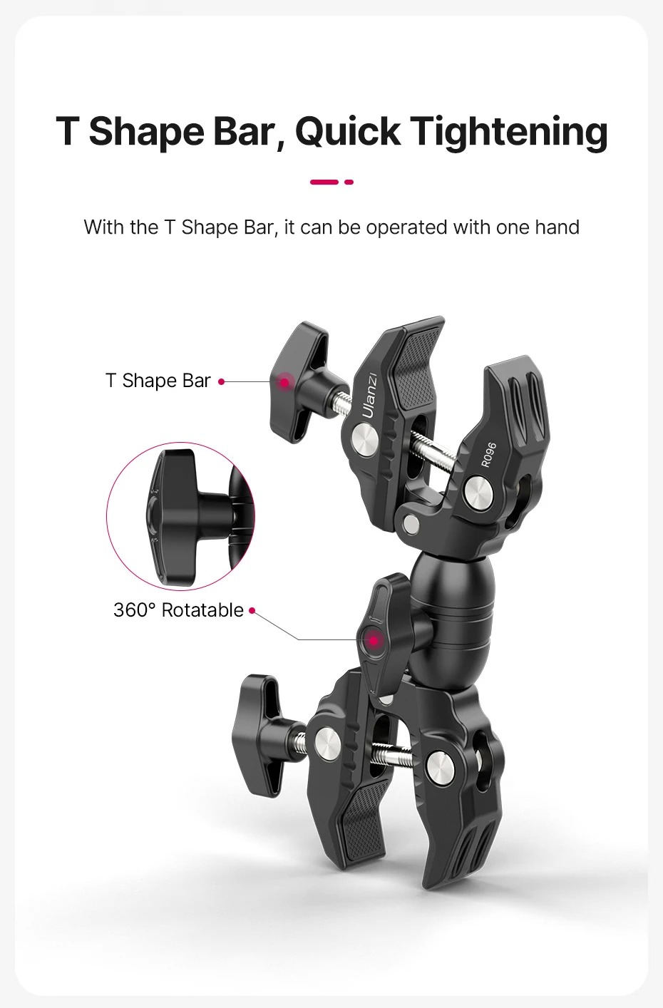 - Thắt chặt nhanh chóng và dễ dàng: Được trang bị thanh hình chữ T, có thể vận hành bằng một tay, nhanh chóng và dễ dàng để chặt hoặc lỏng, tải trọng tối đa là 1.5kg.