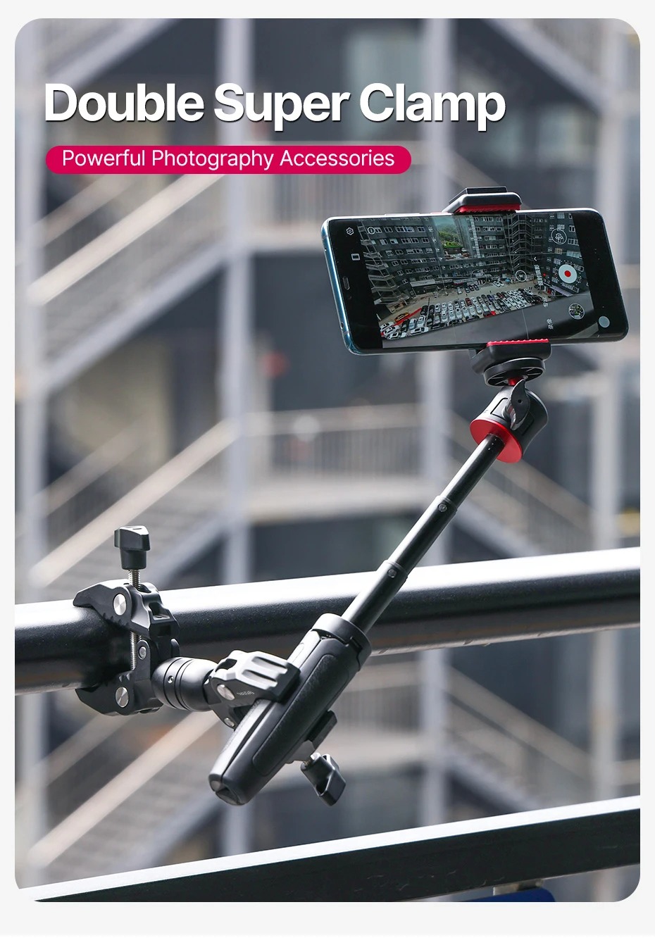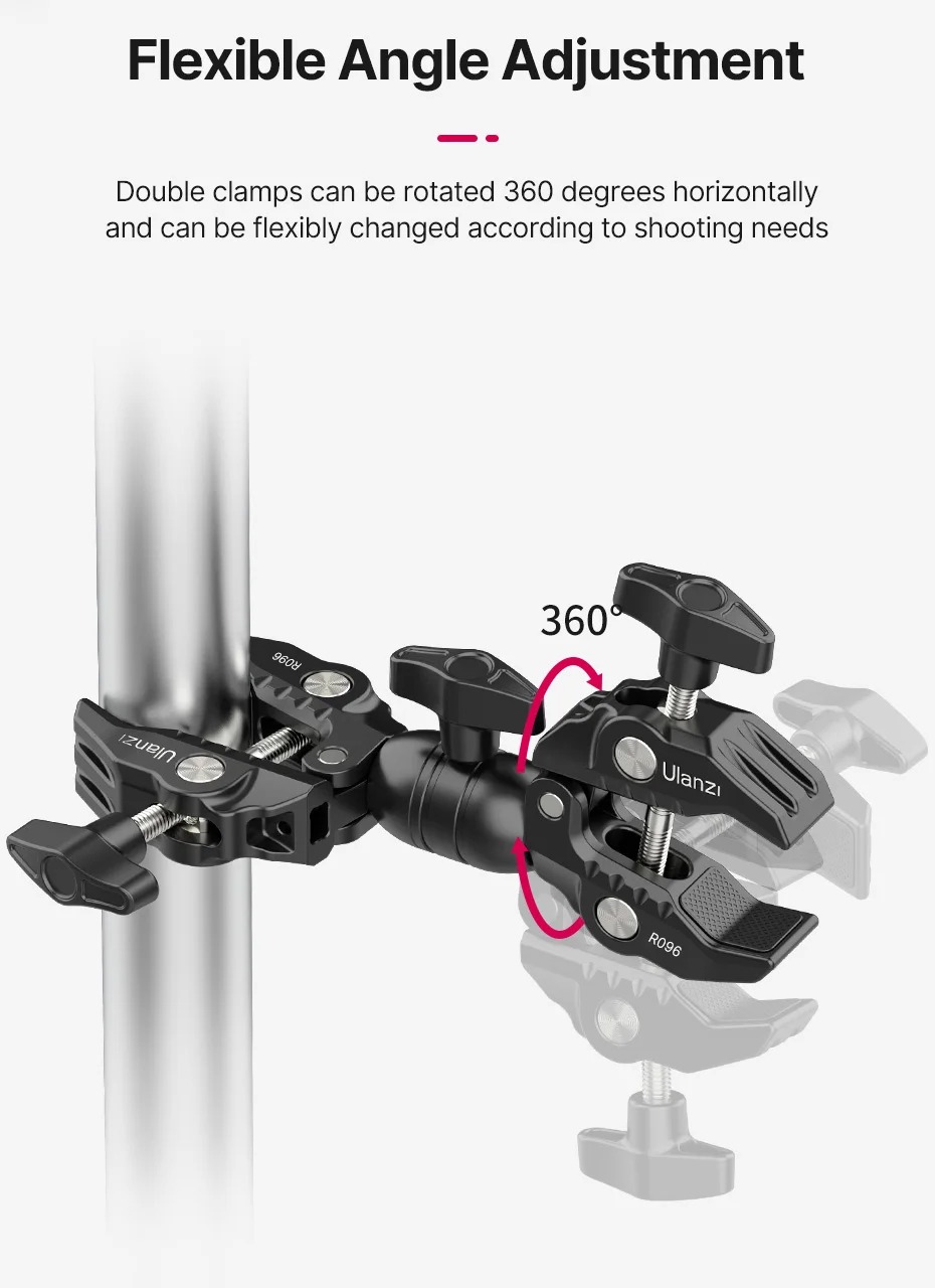 - Điều chỉnh góc linh hoạt: Kẹp đôi có thể xoay 360 độ theo chiều ngang và có thể điều chỉnh linh hoạt theo các nhu cầu sử dụng khác nhau.
