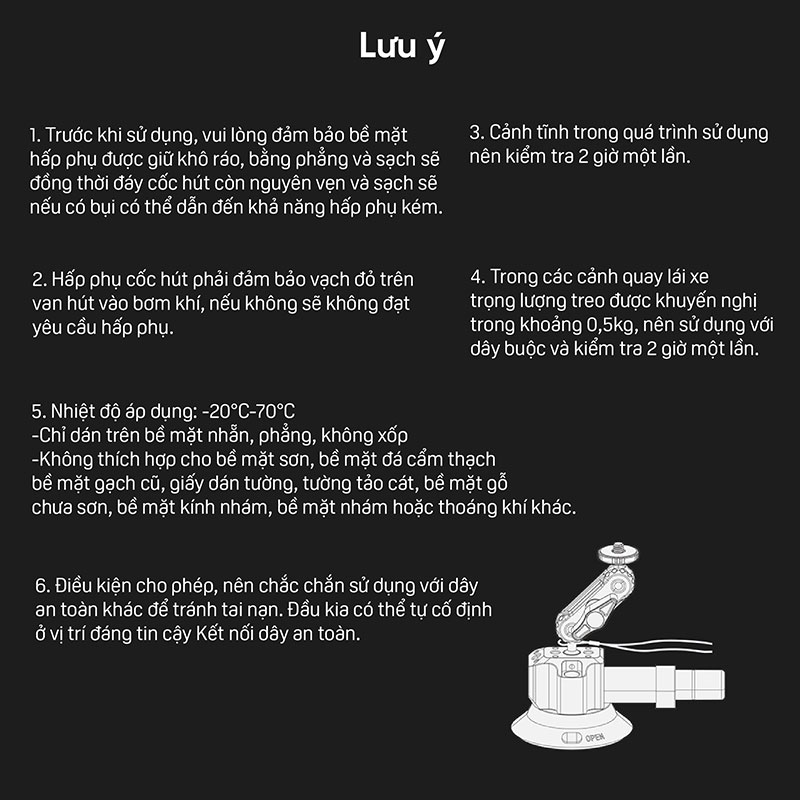 - Cốc hút chân không của máy bơm không khí cấp công nghiệp: Tăng đáng kể lực hút hiệu quả, lực hút dọc 12kg | lực hút ngang 20kg. ( * Đề nghị chịu tải 1kg )