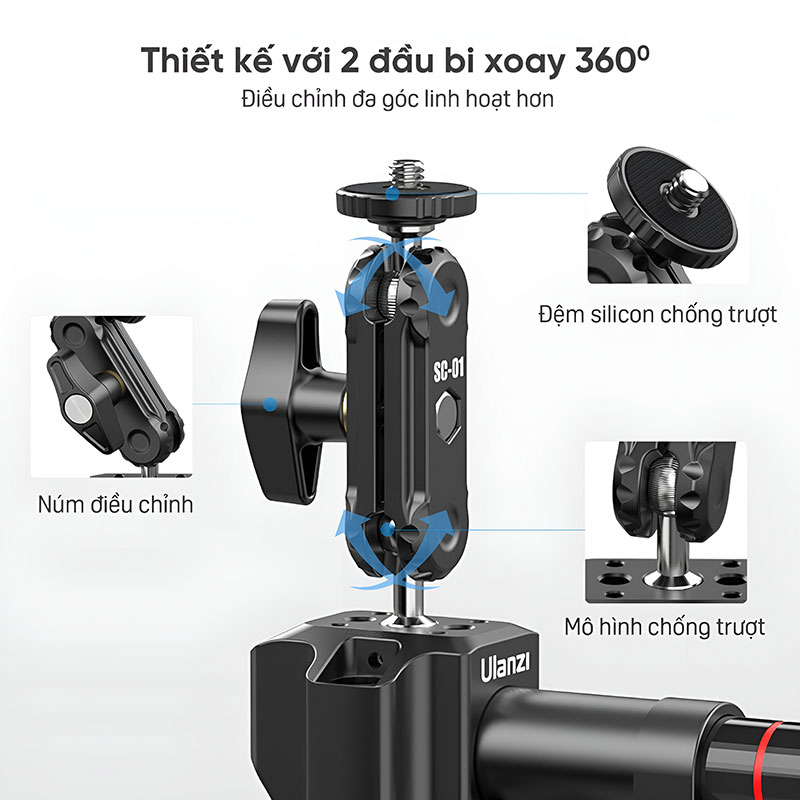- Thiết kế với 2 đầu bi xoay 360 độ điều chỉnh đa góc linh hoạt hơn