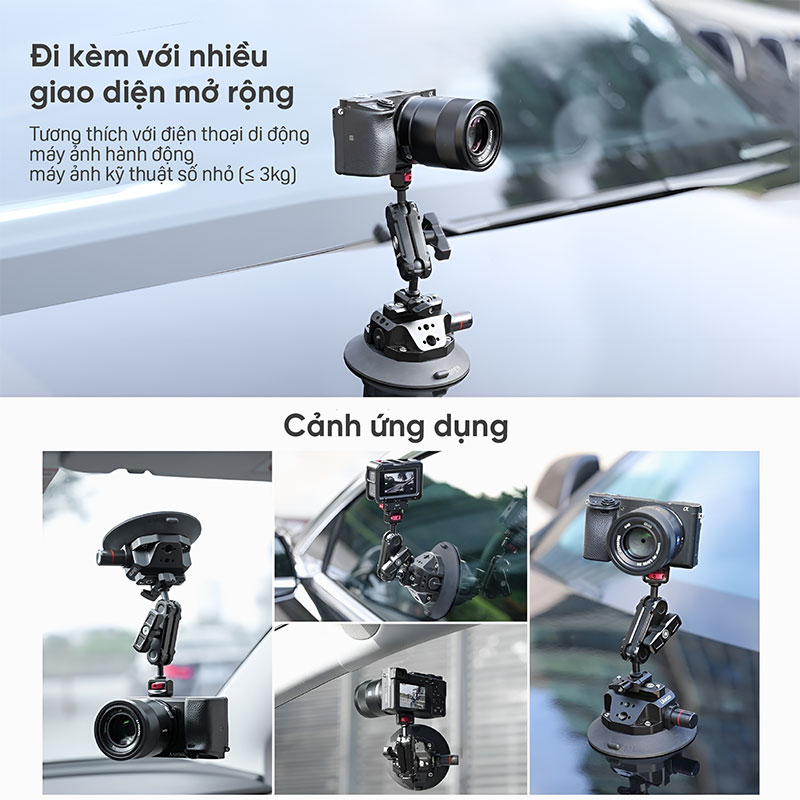 - Đi kèm với nhiều giao diện mở rộng để tương thích rộng rãi: Tương thích với điện thoại di động, máy ảnh hành động, máy ảnh kỹ thuật số nhỏ (≤ 3kg).