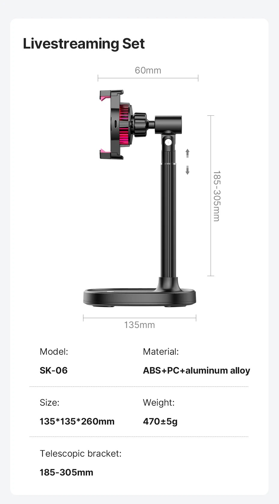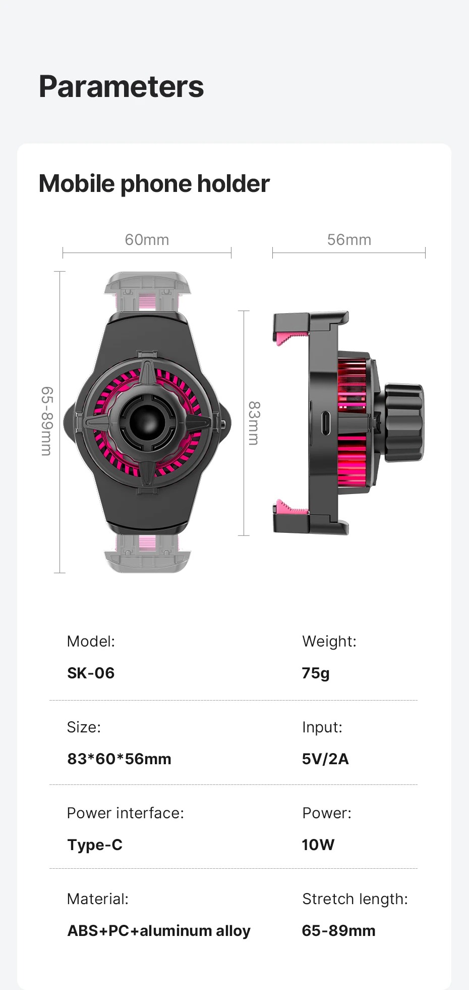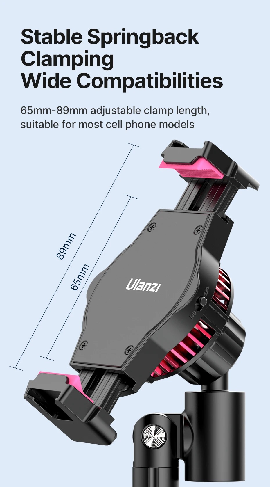 - Chiều dài kẹp có thể điều chỉnh 65mm-89mm, phù hợp với hầu hết các mẫu điện thoại di động.