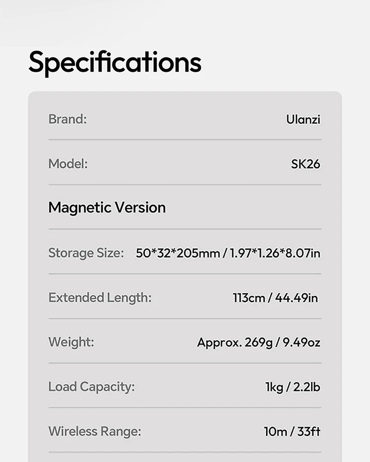 - Kích thước lưu trữ: 50 x 32 x 205mm