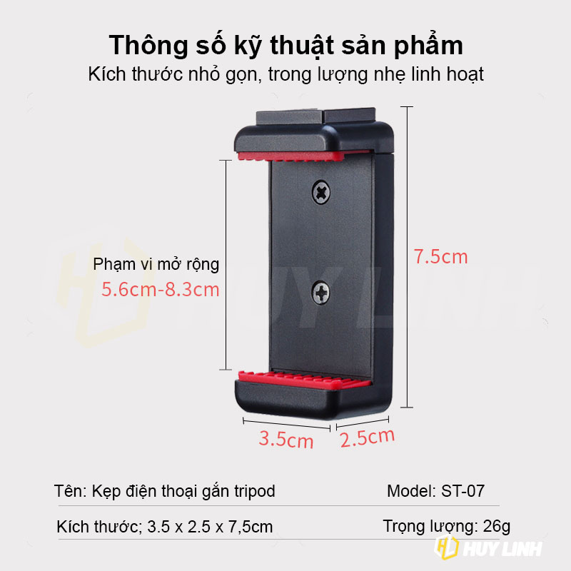 - Ngàm kẹp Ulanzi ST-07 sử dụng cho điện thoại có chiều rộng từ 55-87mm