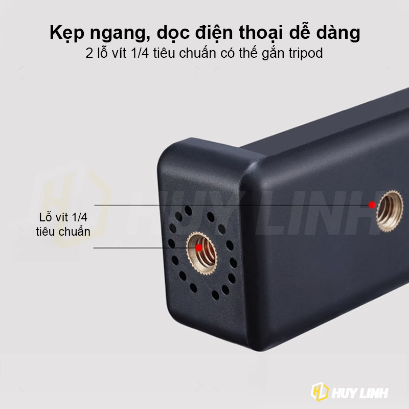 - Ulanzi ST-07 tích hợp 2 ngàm 1/4 inch giúp gắn ngang hoặc dọc lên tripod đều được