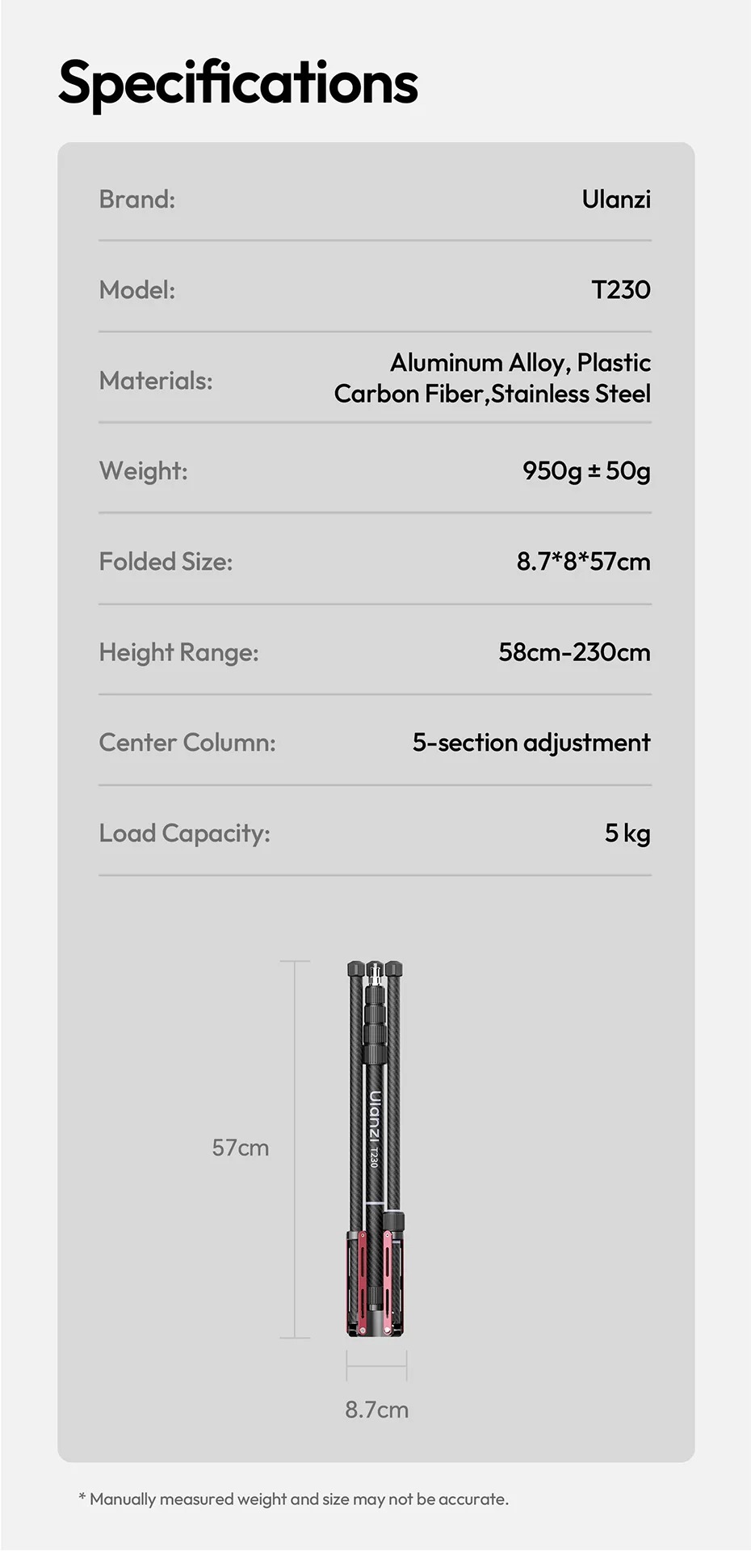 - Kích thước khi gấp gọn: 8.7 * 8 * 57cm
