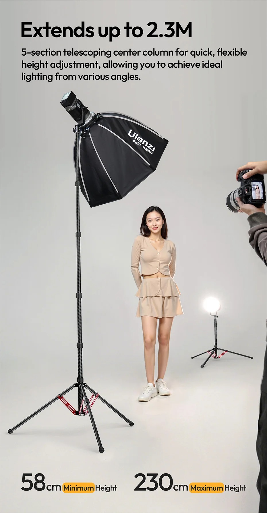 - Chiều cao điều chỉnh: 58cm - 230cm