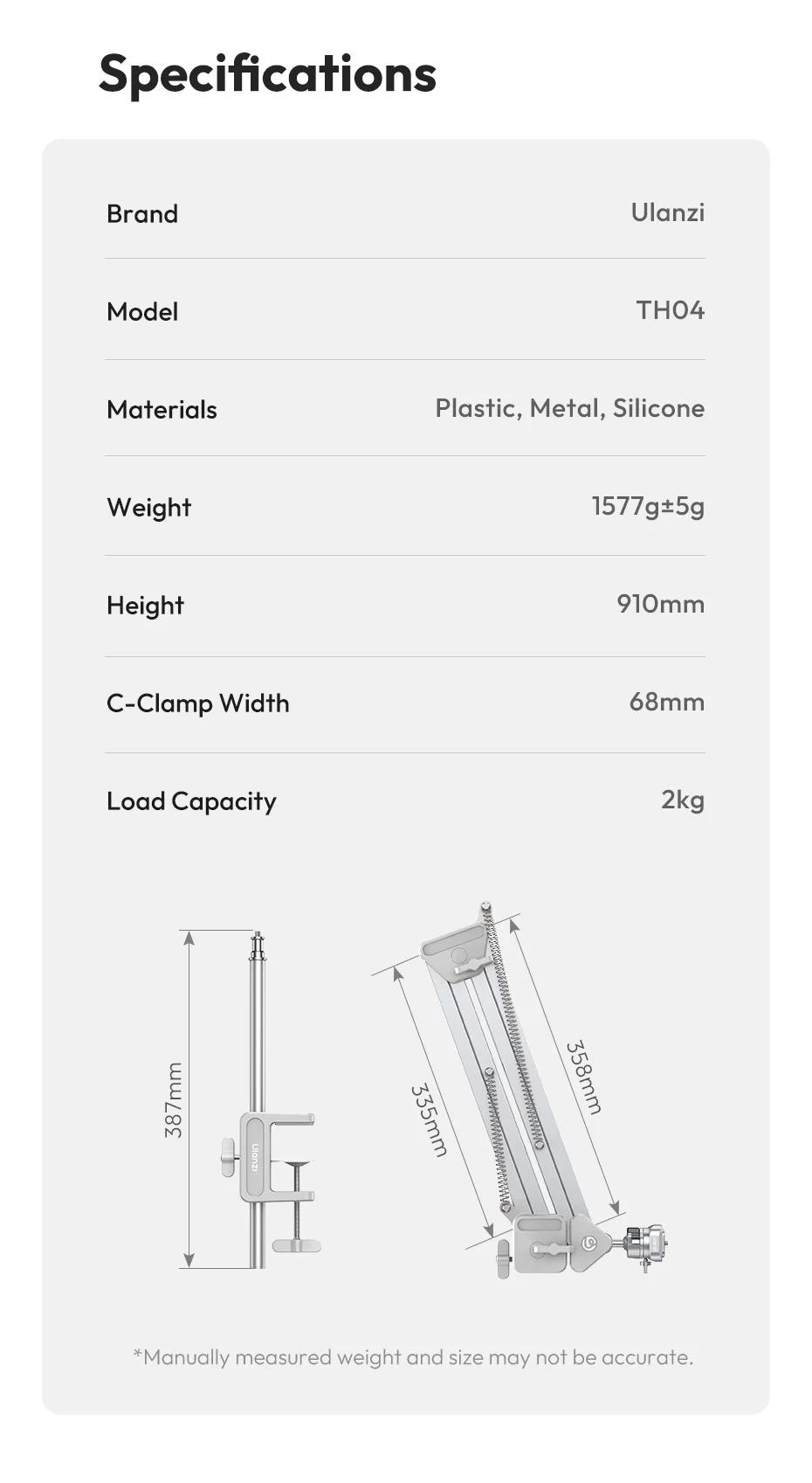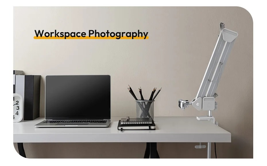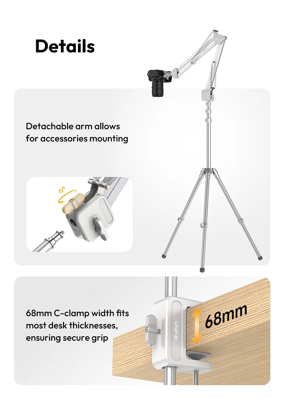 - Với cánh tay mở rộng lên đến 910mm, nó cung cấp góc nhìn từ trên xuống chân thực và chuyên nghiệp hơn một cách dễ dàng