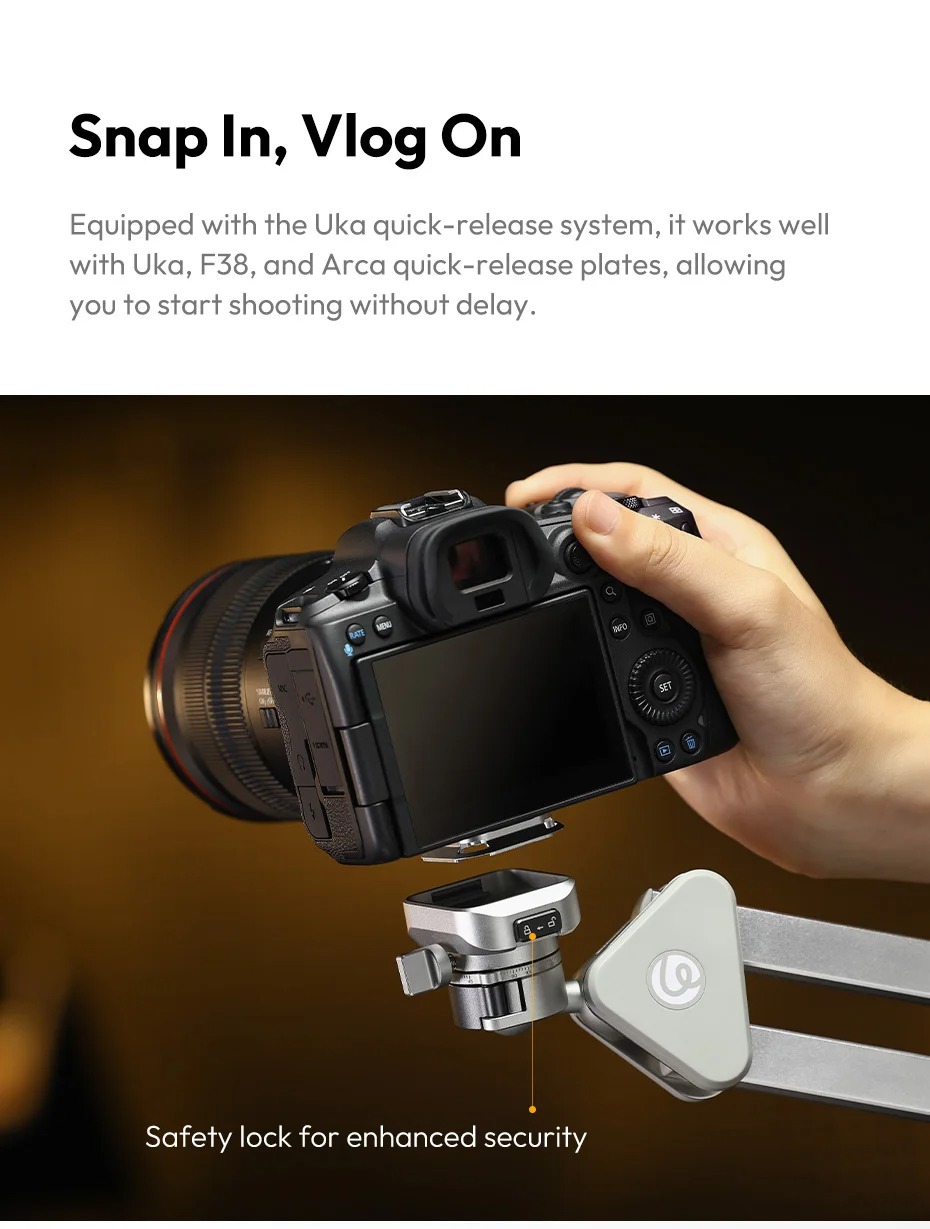 - Đầu bi toàn cảnh 360° cho phép chuyển đổi nhanh giữa chế độ ngang và dọc, giúp bạn tự do điều chỉnh góc chụp để có bức ảnh hoàn hảo