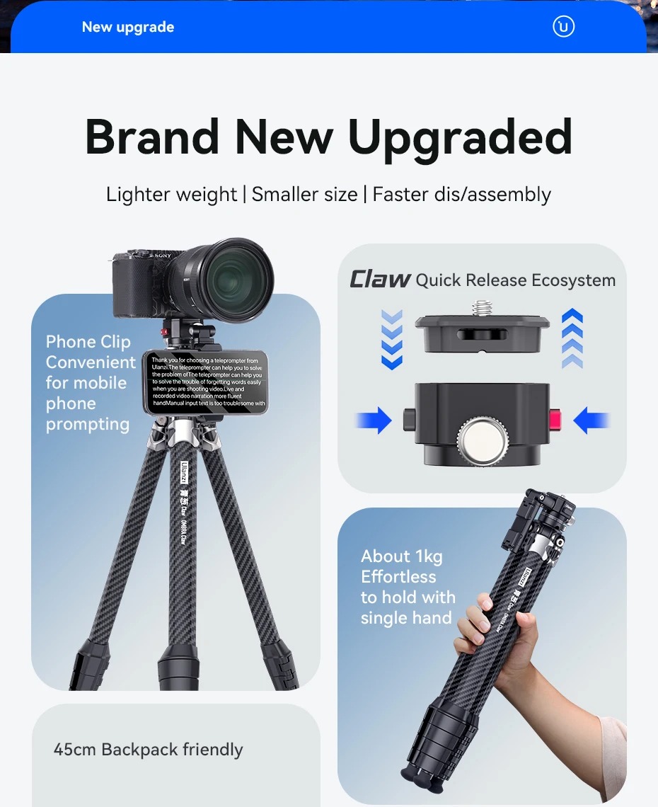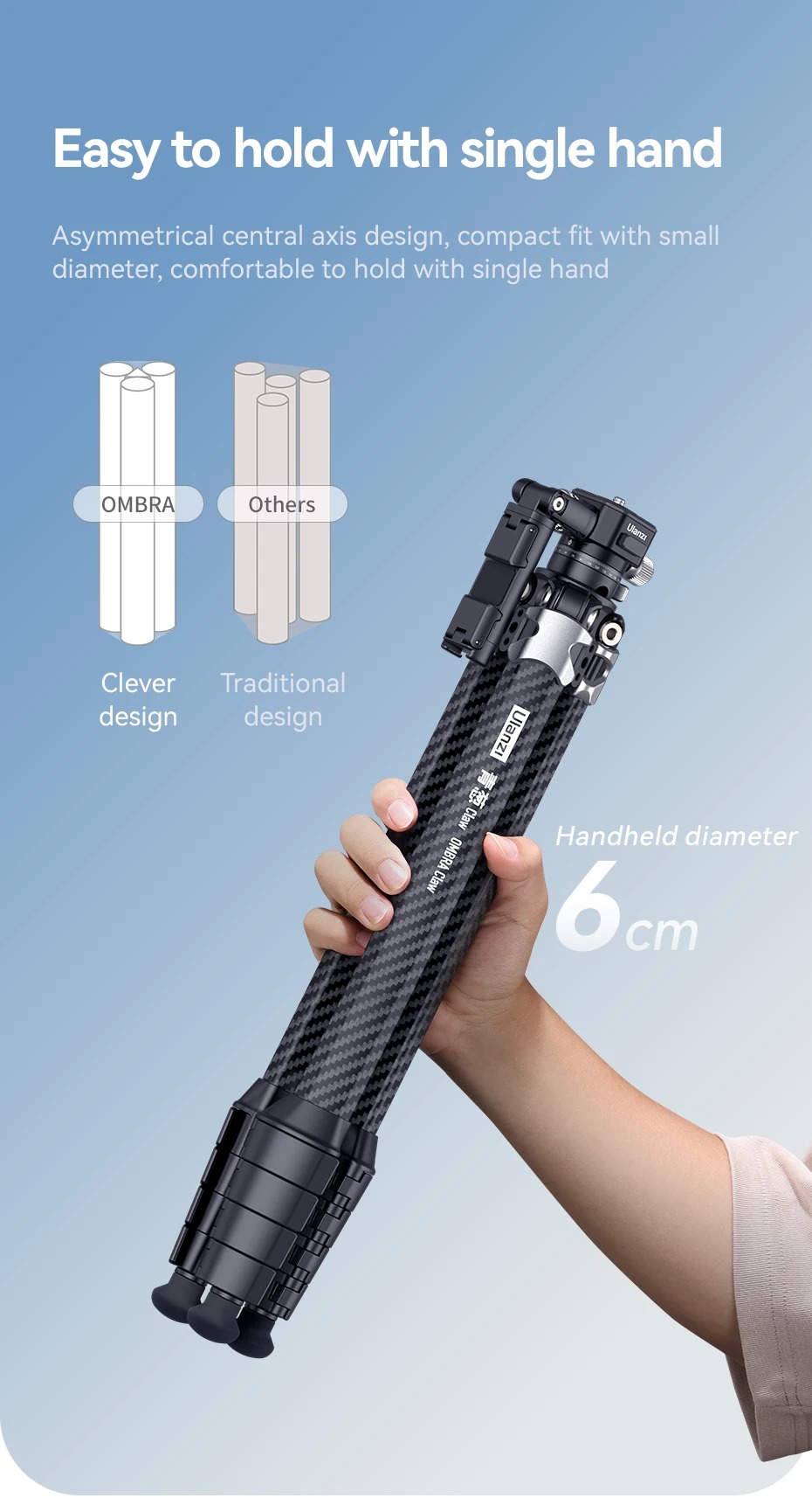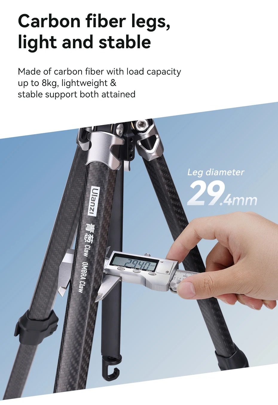 - Chân bằng sợi carbon giúp ổn định nhẹ: Được làm bằng sợi carbon có khả năng chịu tải lên tới 8kg, vừa đạt được sự hỗ trợ nhẹ và ổn định.