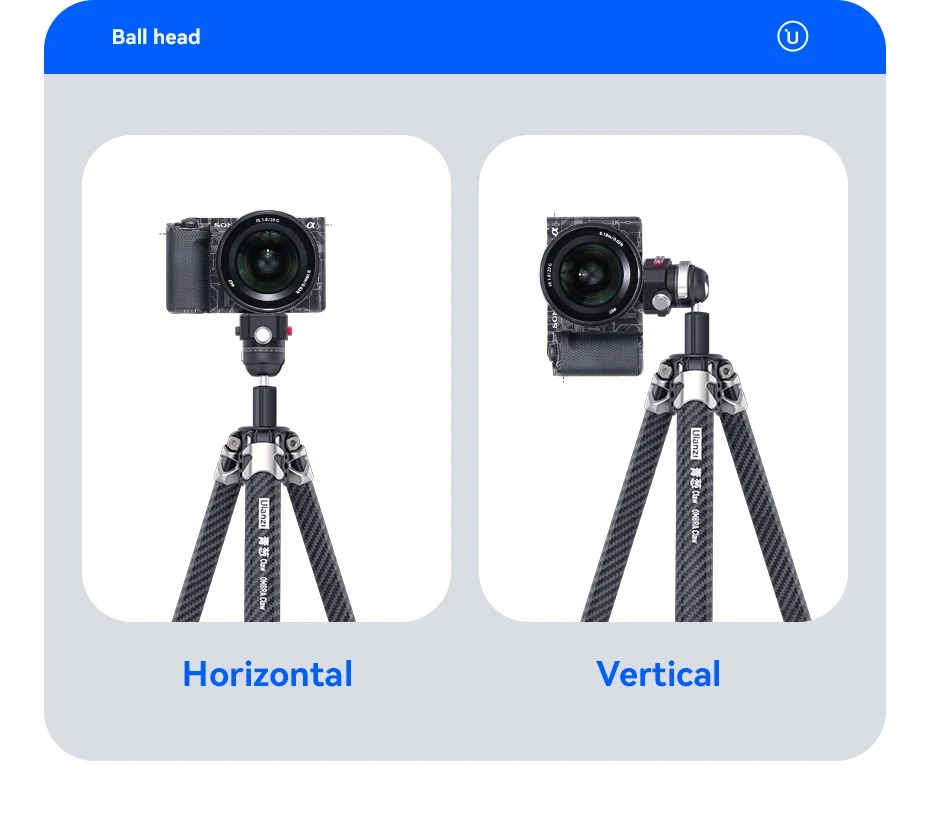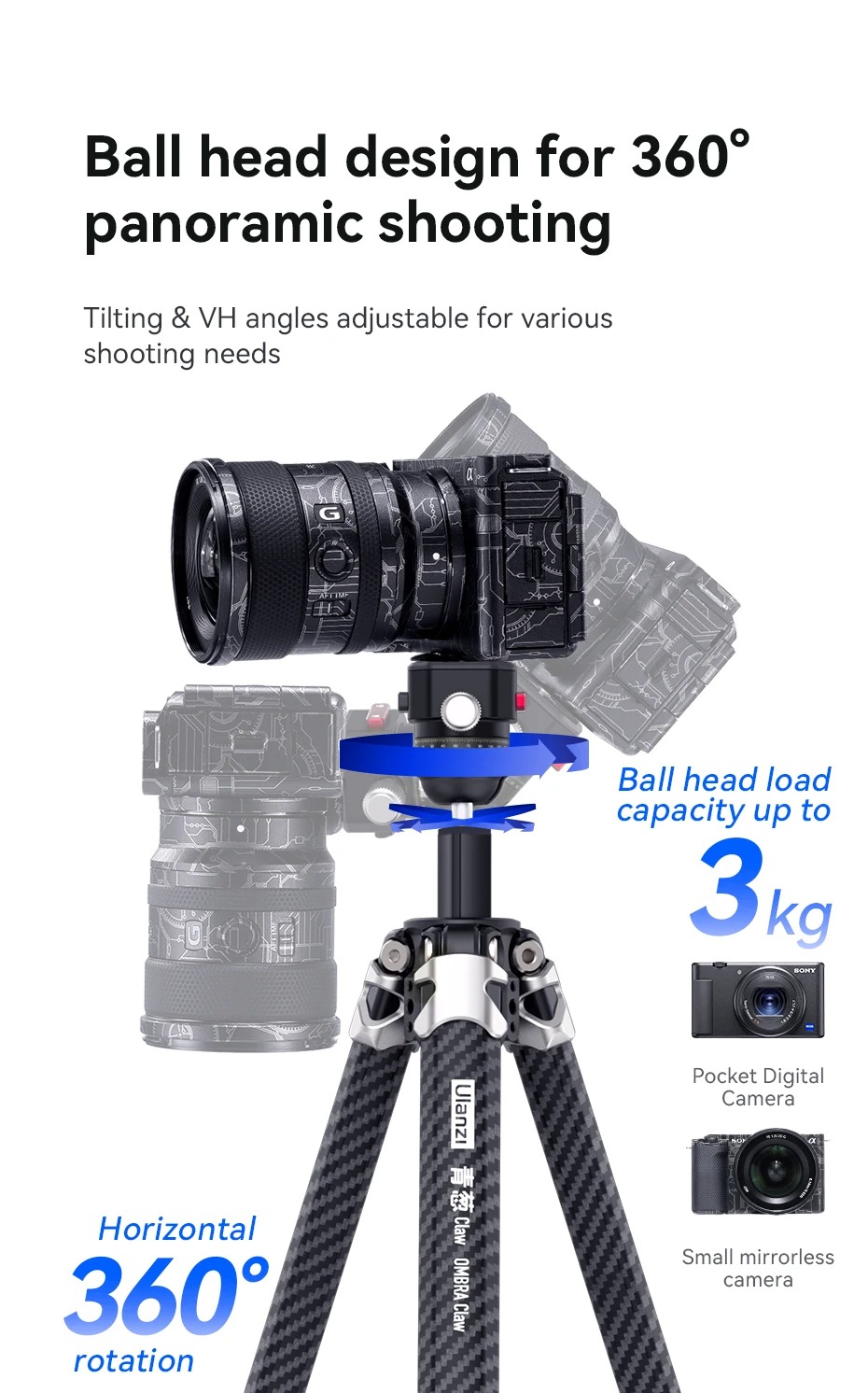 - Thiết kế đầu bi để chụp toàn cảnh 360°: Có thể điều chỉnh theo chiều dọc và chiều ngang ở nhiều góc độ để đáp ứng các nhu cầu chụp khác nhau.
