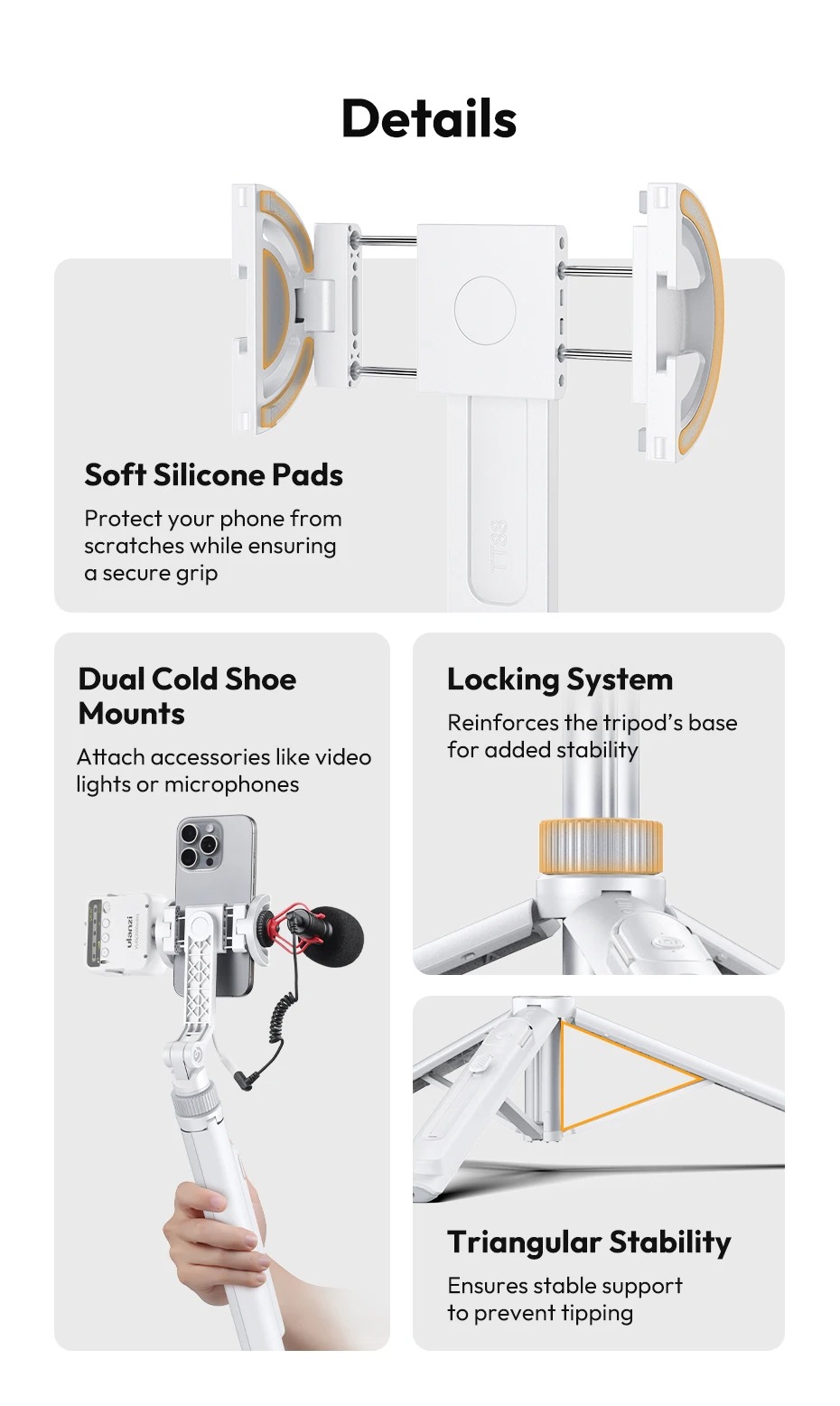 - Chỉ nặng 335g và có thể gập lại, chân máy này cực kỳ di động và dễ dàng đóng gói cho những chuyến phiêu lưu ngoài trời hoặc du lịch.