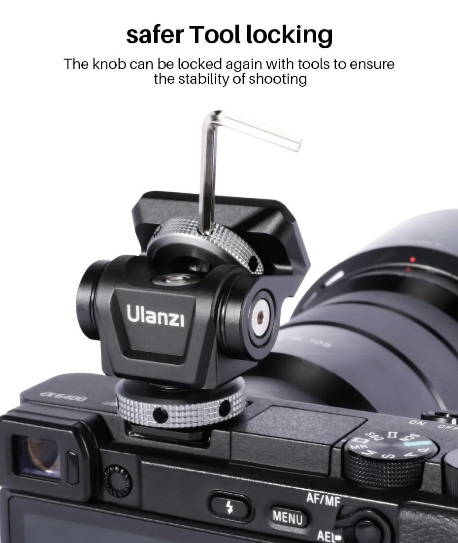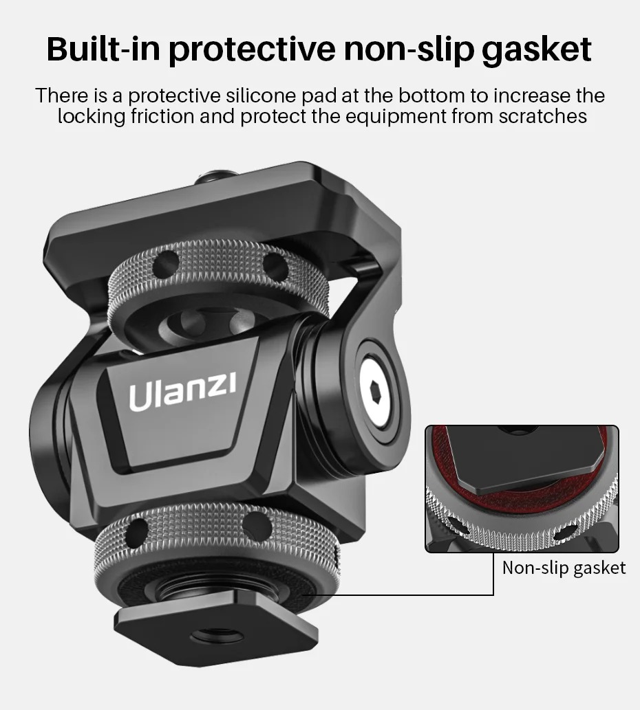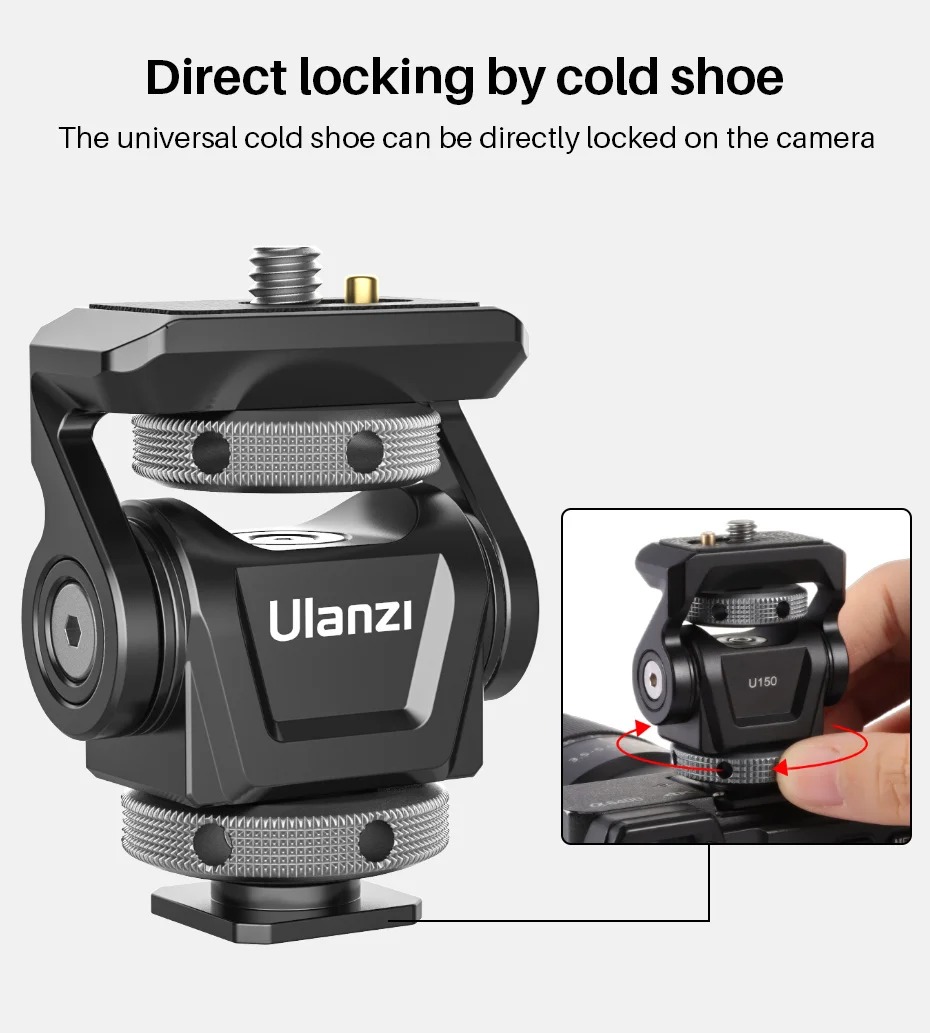 - Ngàm kết nối cold shoe ở dưới, và 1/4'' ở trên phù hợp với hầu hết các loại thiết bị hiện có trên thị trường.
