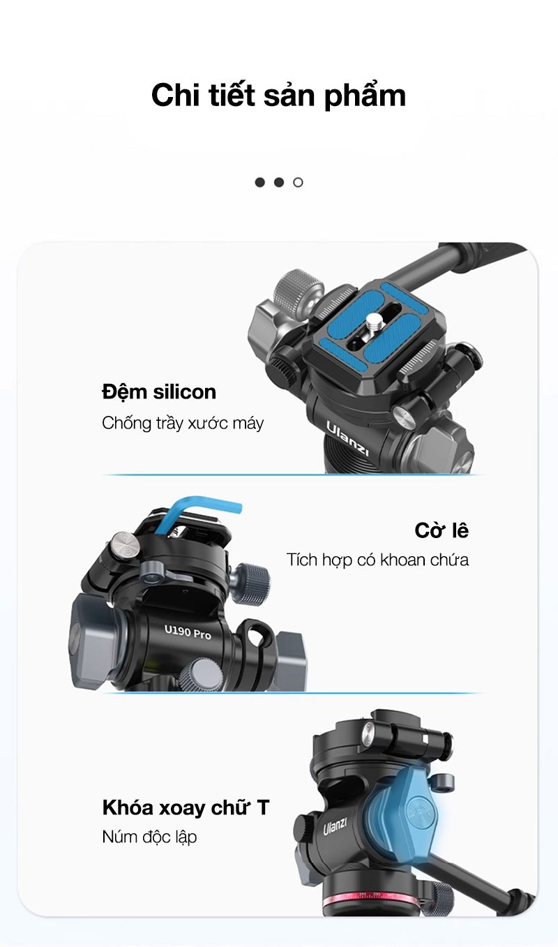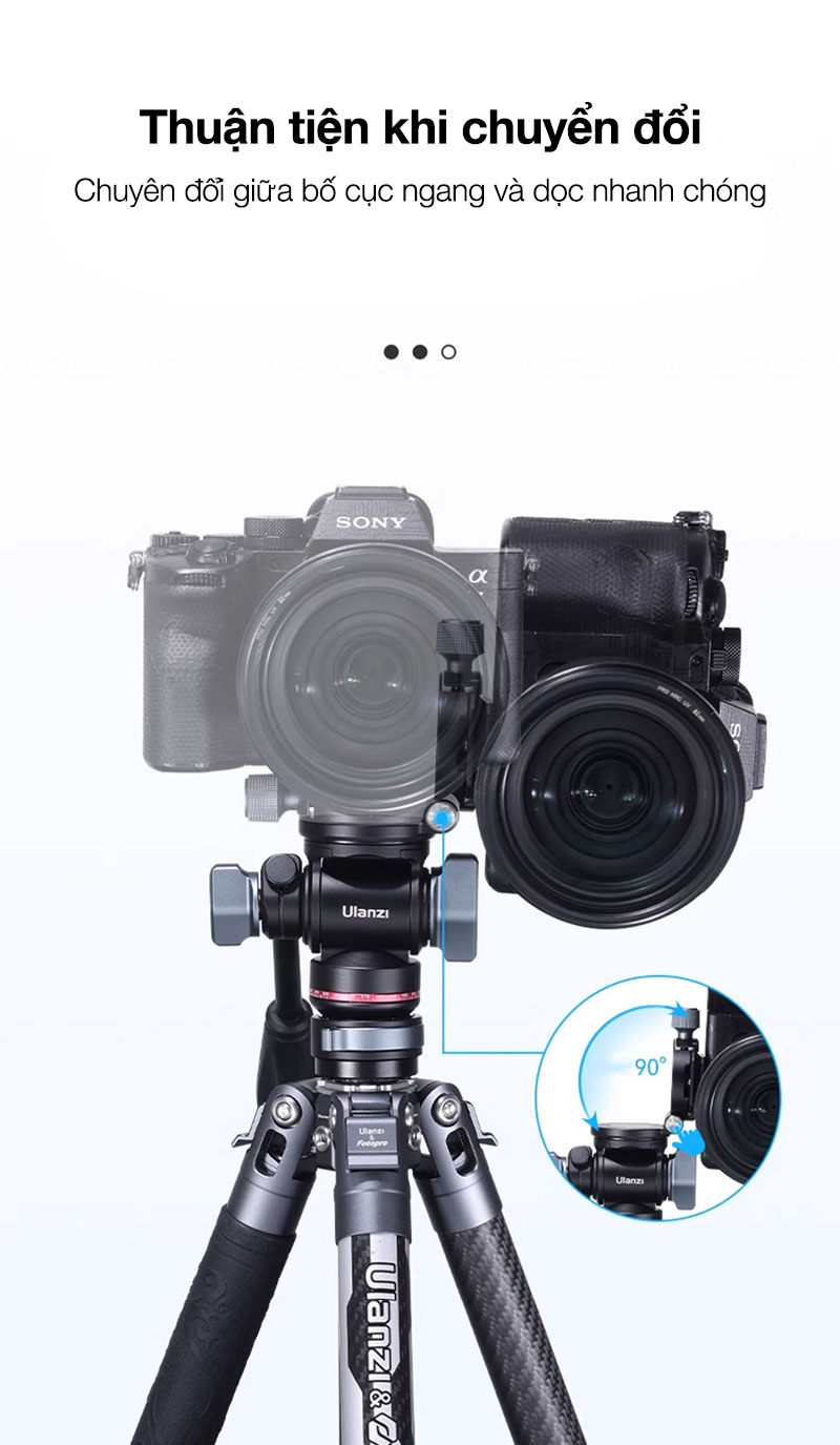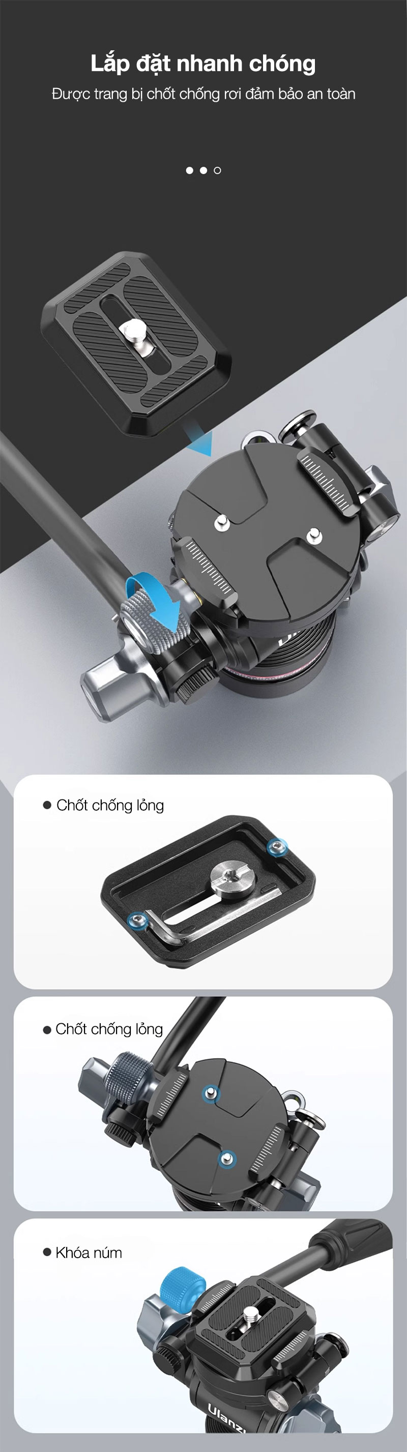 - Bộ kết nối Arca-Swiss: Đảm bảo việc tháo/lắp máy ảnh một cách nhanh chóng, và có các chốt an toàn để ngăn ngừa việc trượt máy ảnh.