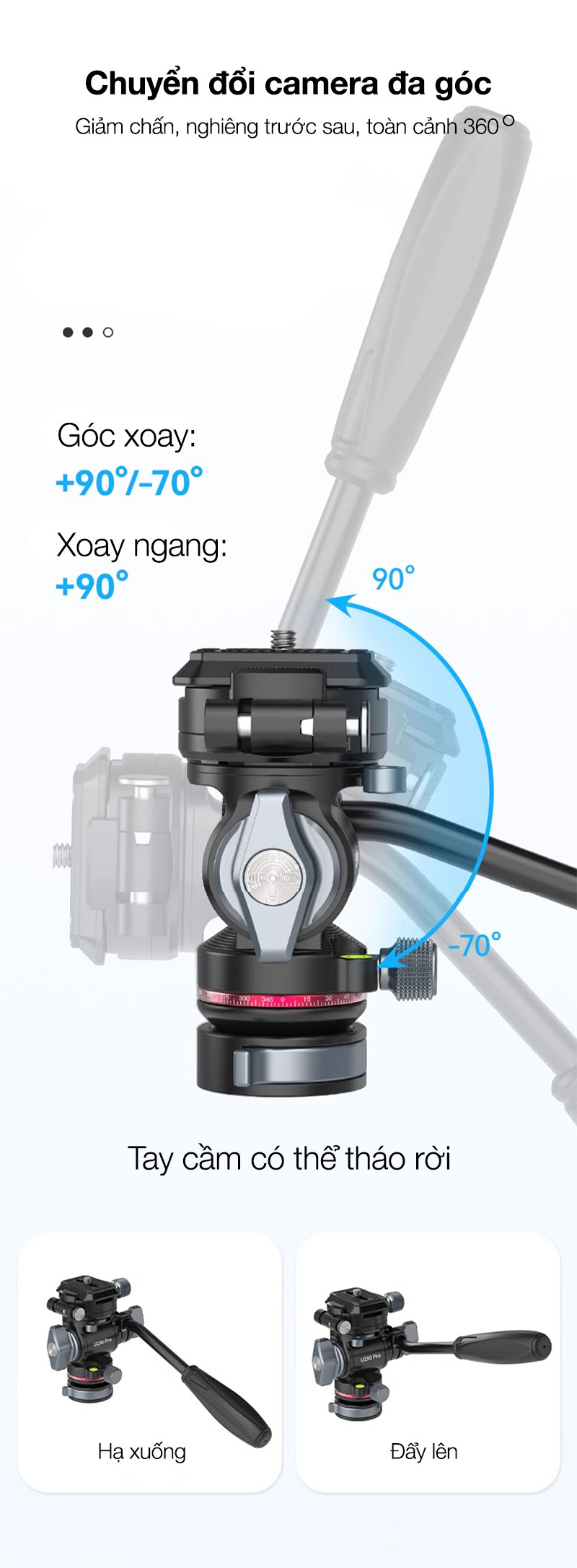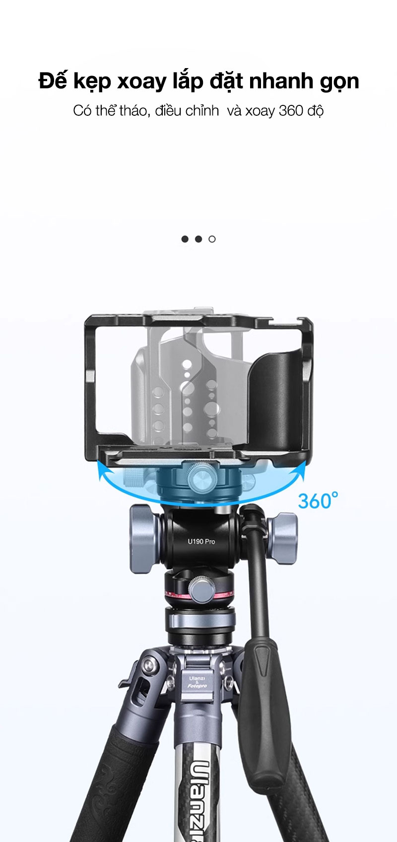 - Bộ đế xoay 360 độ: có thể tùy chỉnh góc độ máy kể cả khi dùng cage máy ảnh