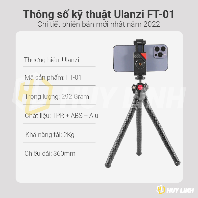 Ulanzi U-Select FT-01 là một mẫu chân tripod bạch tuộc giá rẻ của thương hiệu Ulanzi chuyên phụ kiện Vloger. Mẫu tripod Flexibe được thiết kế uốn cong tiện lợi có thể đặt để hoặc treo ở mọi địa hình. Tripod bạch tuộc được tích hợp sẵn ballhead ra ngàm 1/4 inch tiện lợi dễ dàng kết nối với các phụ kiện rời khác như đèn trợ sáng, micro định hướng hoặc ngàm kẹp điện thoại.