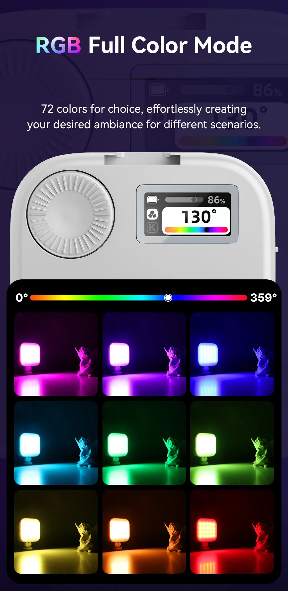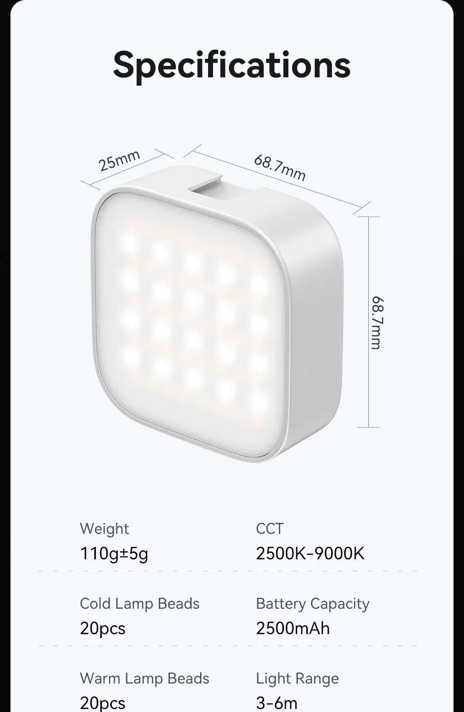 - 2500-9000K CCT: Nhiệt độ màu từ 2500K đến 9000K, mang đến cho bạn nhiều lựa chọn chụp ảnh hơn cho các nhu cầu khác nhau.
