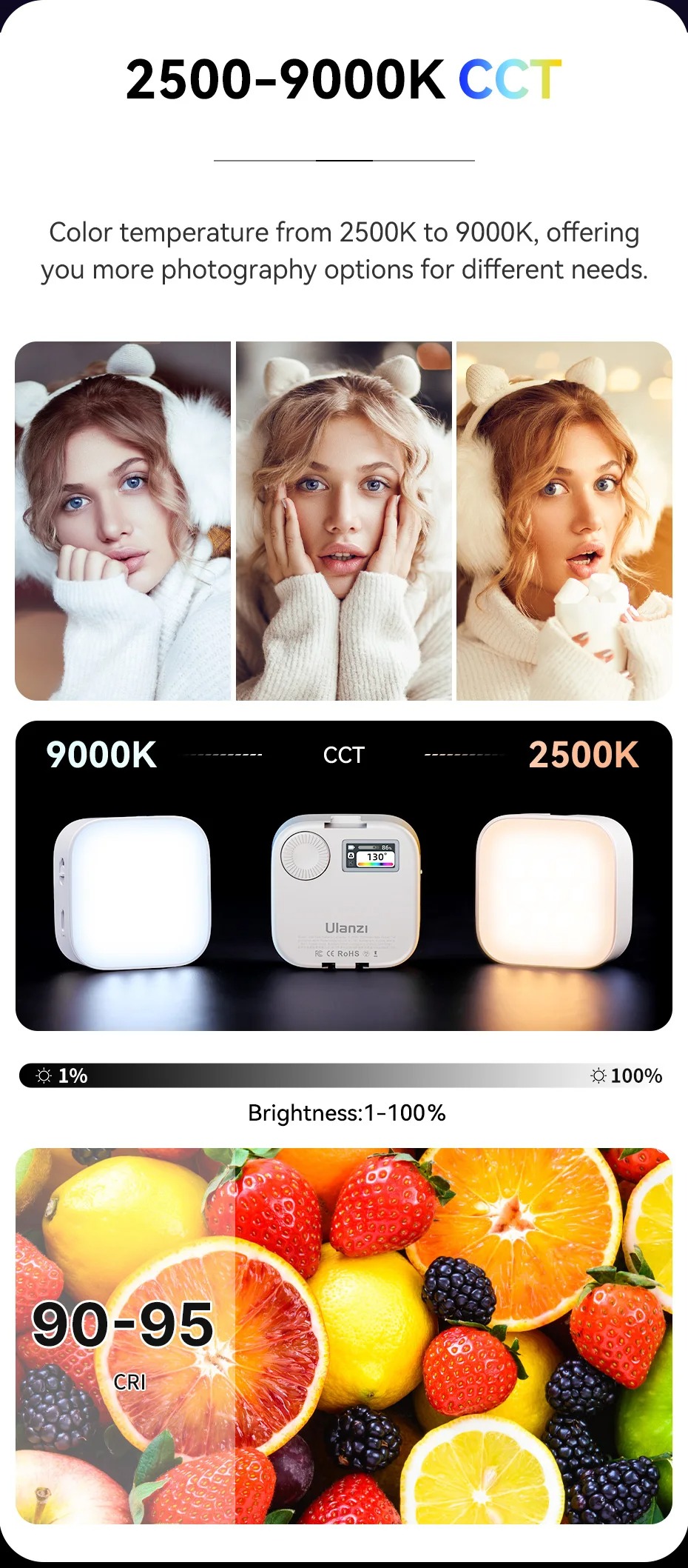 - CCT: 2500K-9000K