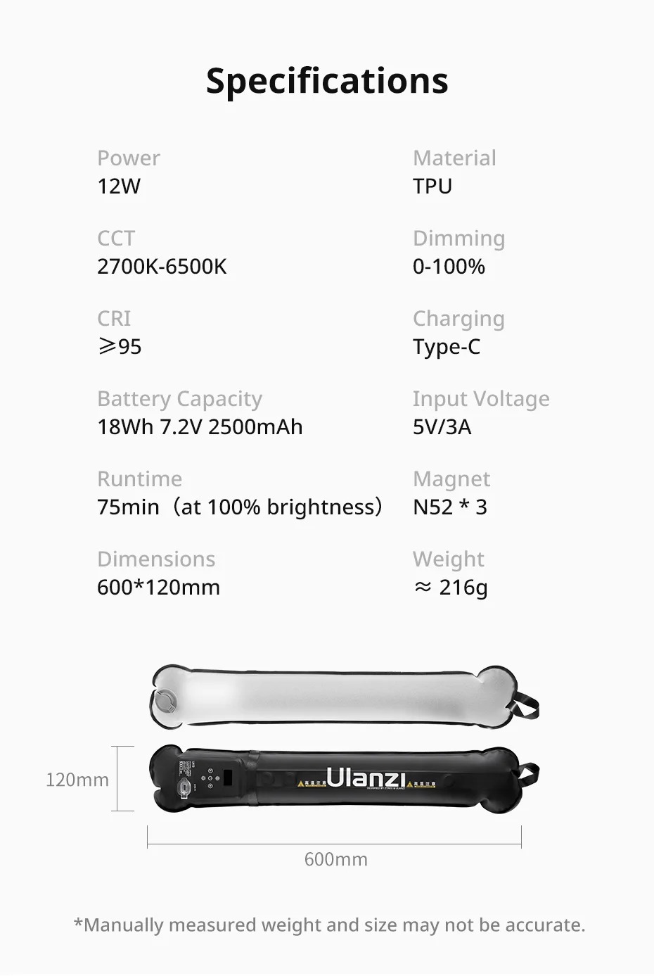 - Thời gian hoạt động: 75 phút (ở mức cường độ sáng 100%)