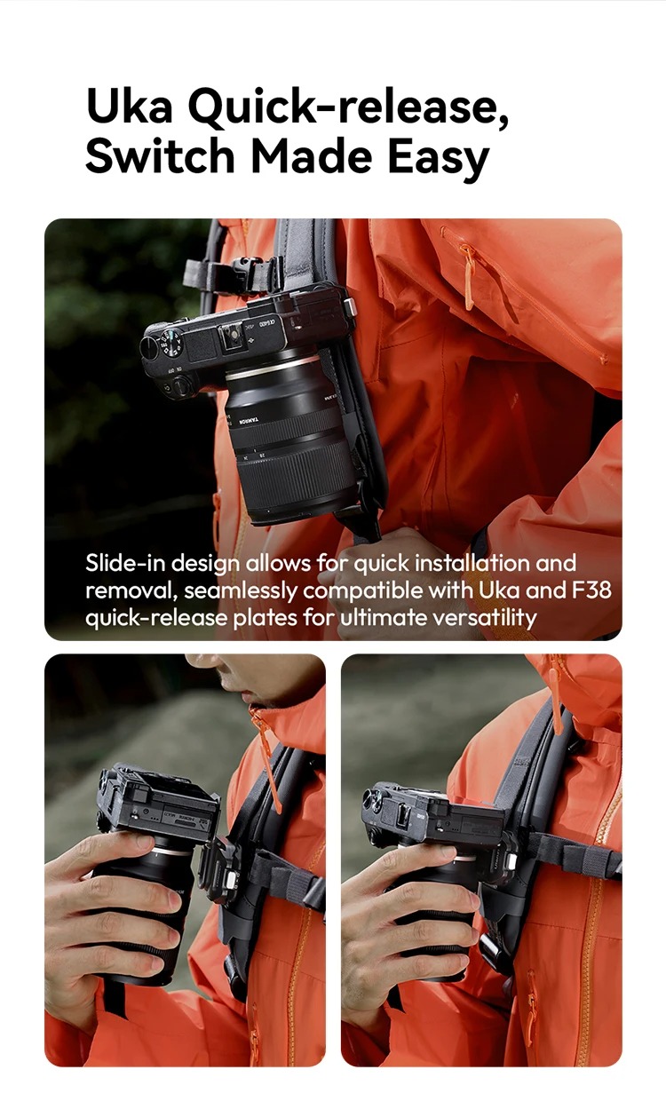 - Nằm trong hệ sinh thái Uka tương thích với nhiều sản phẩm, tấm plate có thể dùng với bộ tháo lắp nhanh falcam F38.