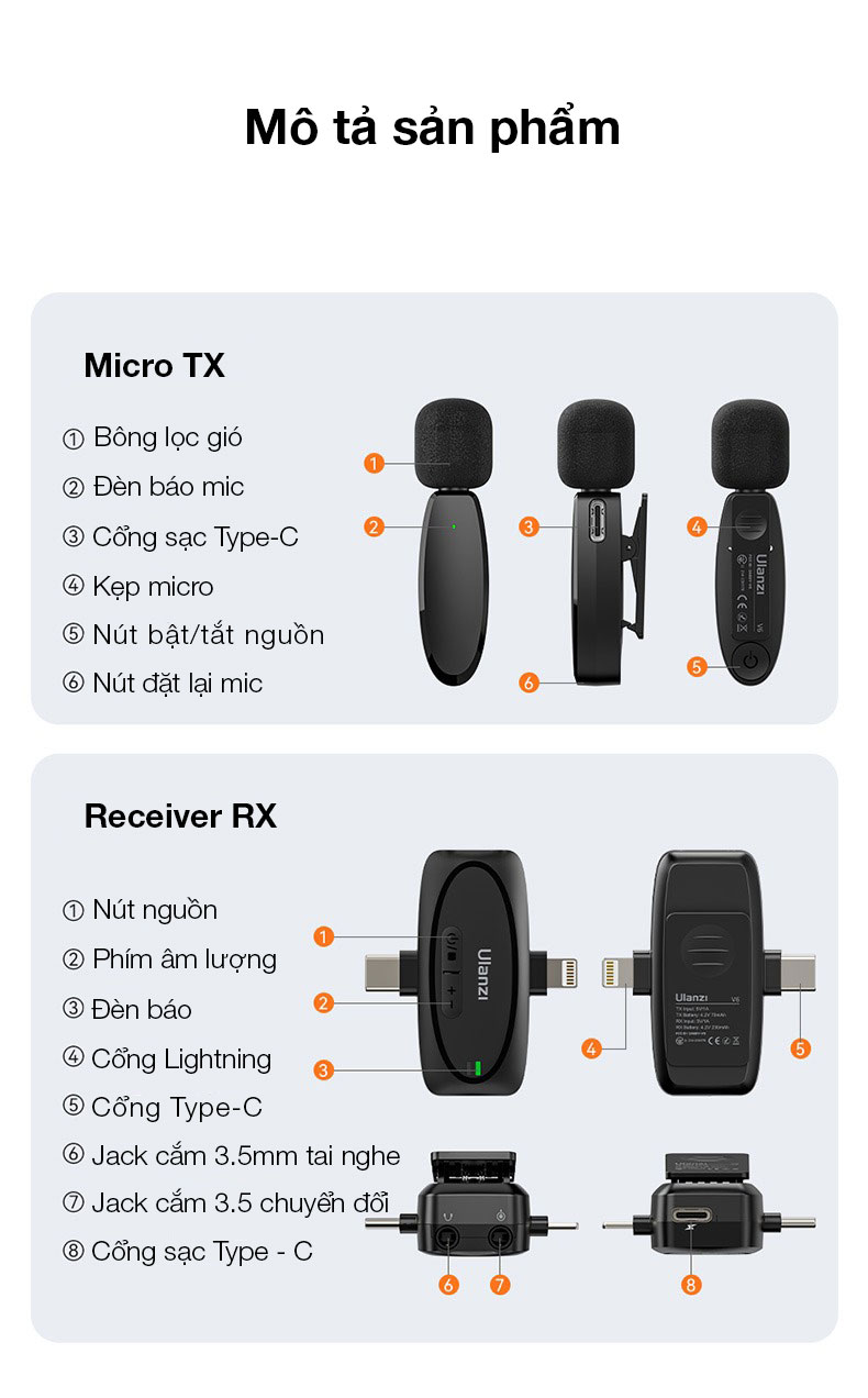 - Độ tương thích cao, phù hợp với cả điện thoại IPhone/ Android/ Máy ảnh.