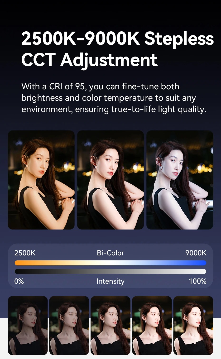 - Chỉ số hoàn màu 95, nhiệt độ màu sáng, tối, mát và ấm rộng, đáp ứng hiệu ứng ánh sáng cần thiết trong các môi trường khác nhau