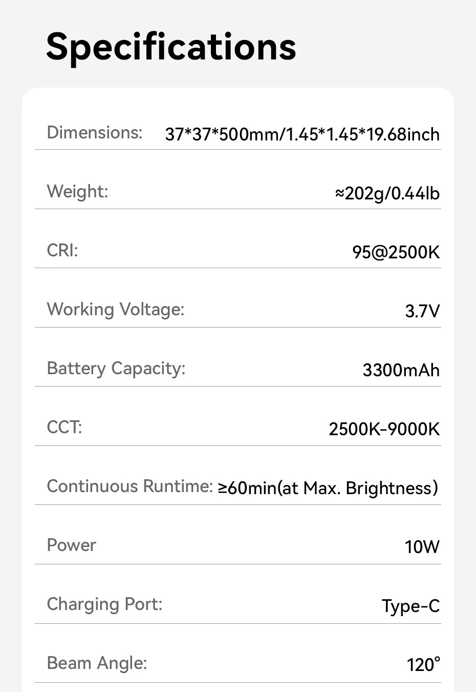 - Thời gian làm việc liên tục: ≥60 phút (độ sáng tối đa)