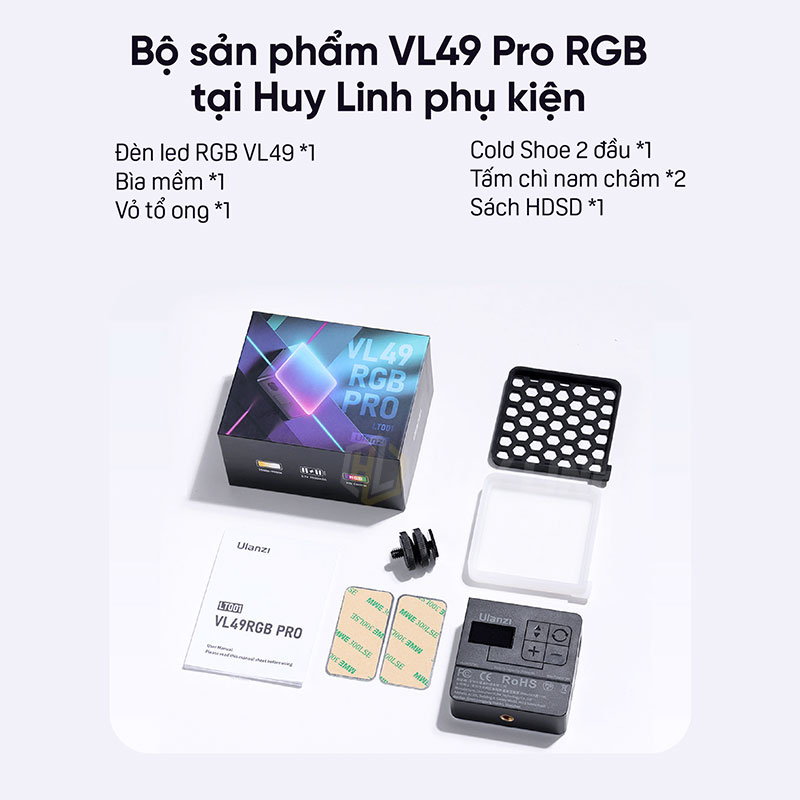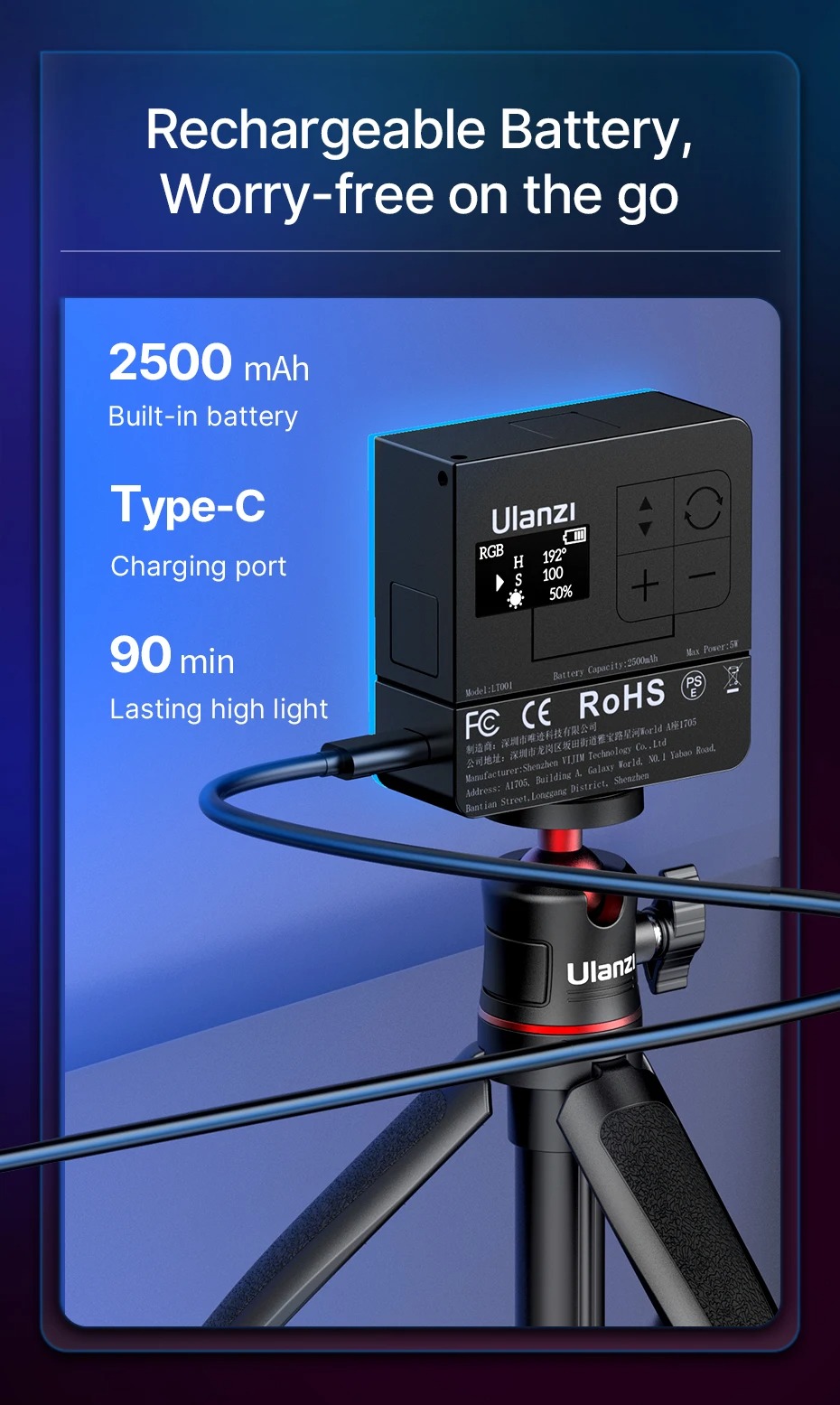 Ulanzi LT001 (Model Ulanzi VL49 Pro RGB) là mẫu đèn led Studio nhỏ gọn mới nhất từ Brand này trong năm 2023 ngoài ra các mẫu công suất lớn hơn có thể kể đến như Ulanzi LT002, Ulanzi LT003