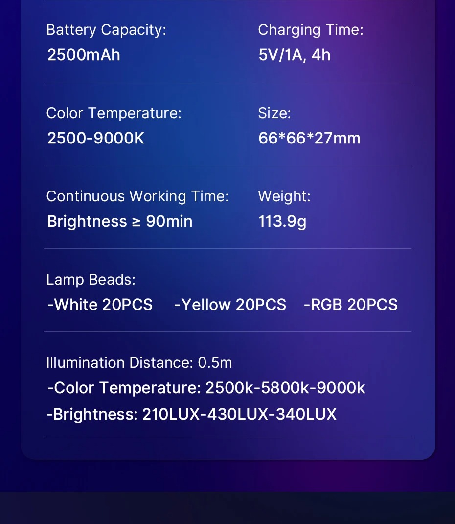 - Thời gian hoạt động: ≥ 90 phút (Tùy cường độ sáng hoạt động)