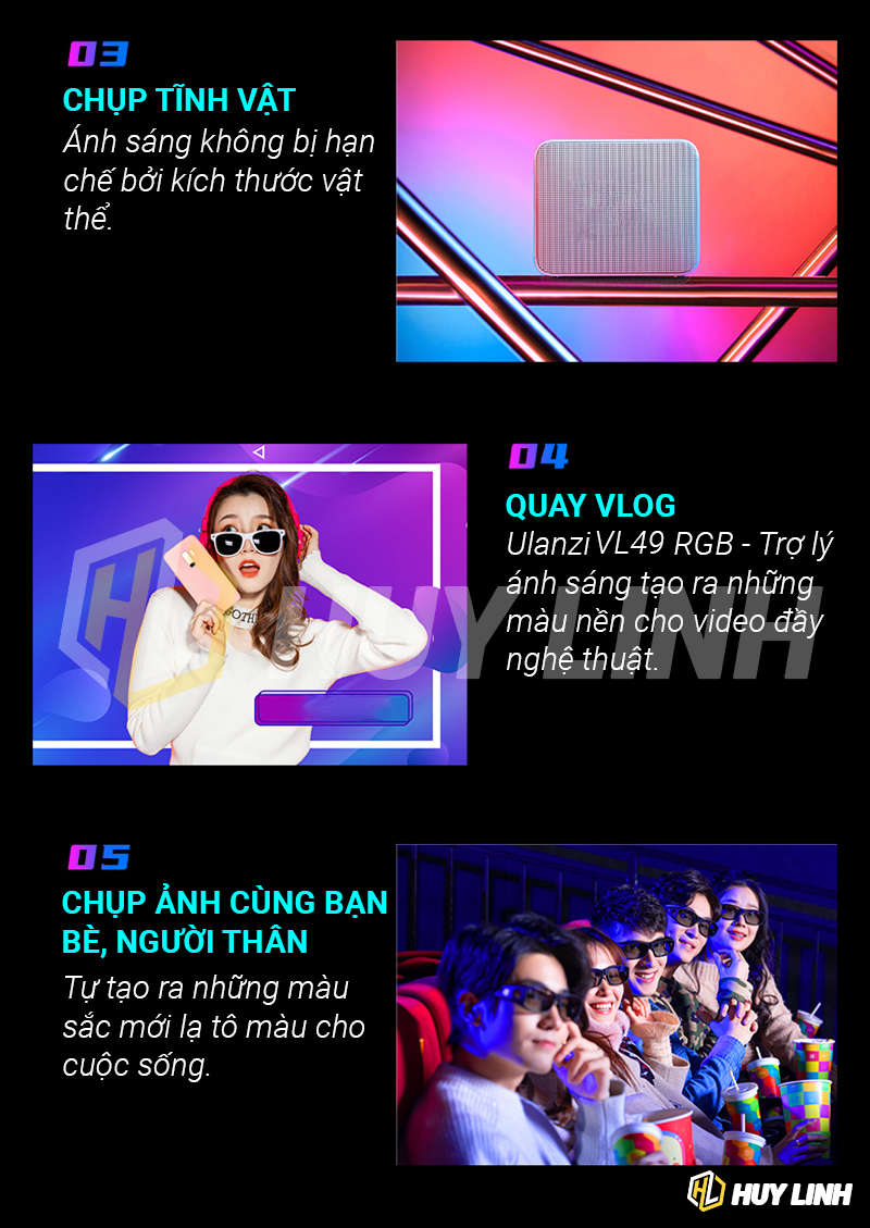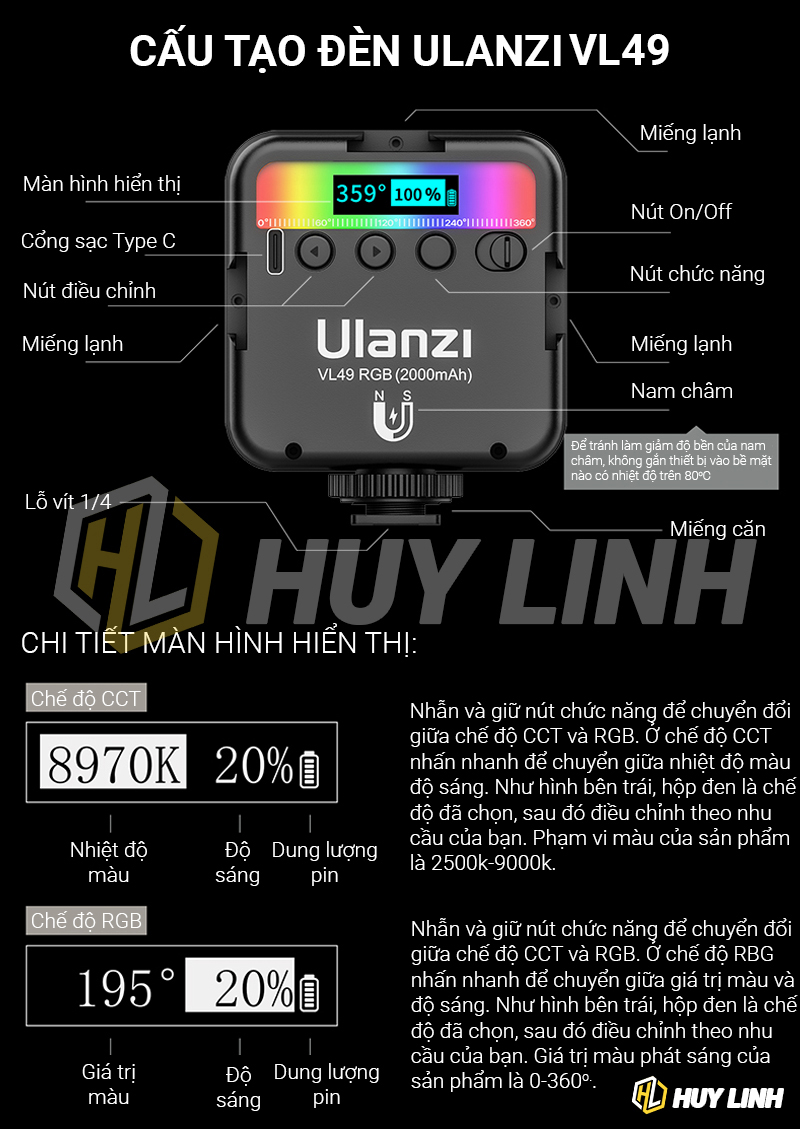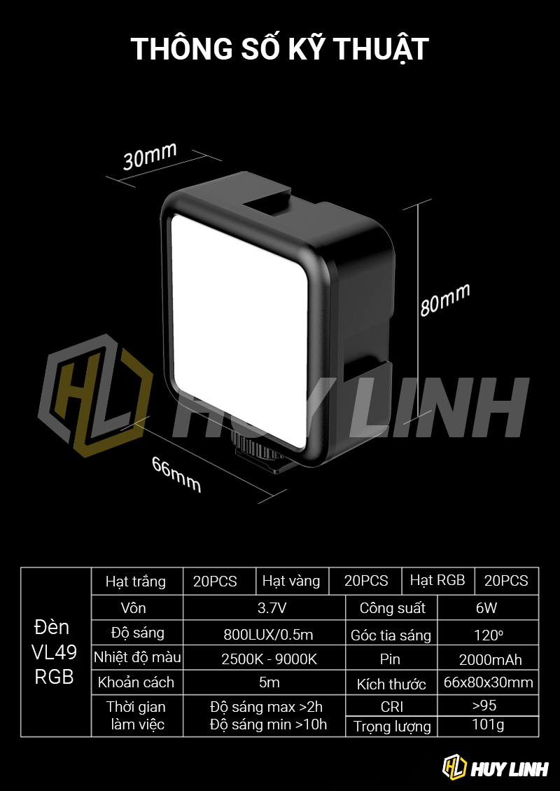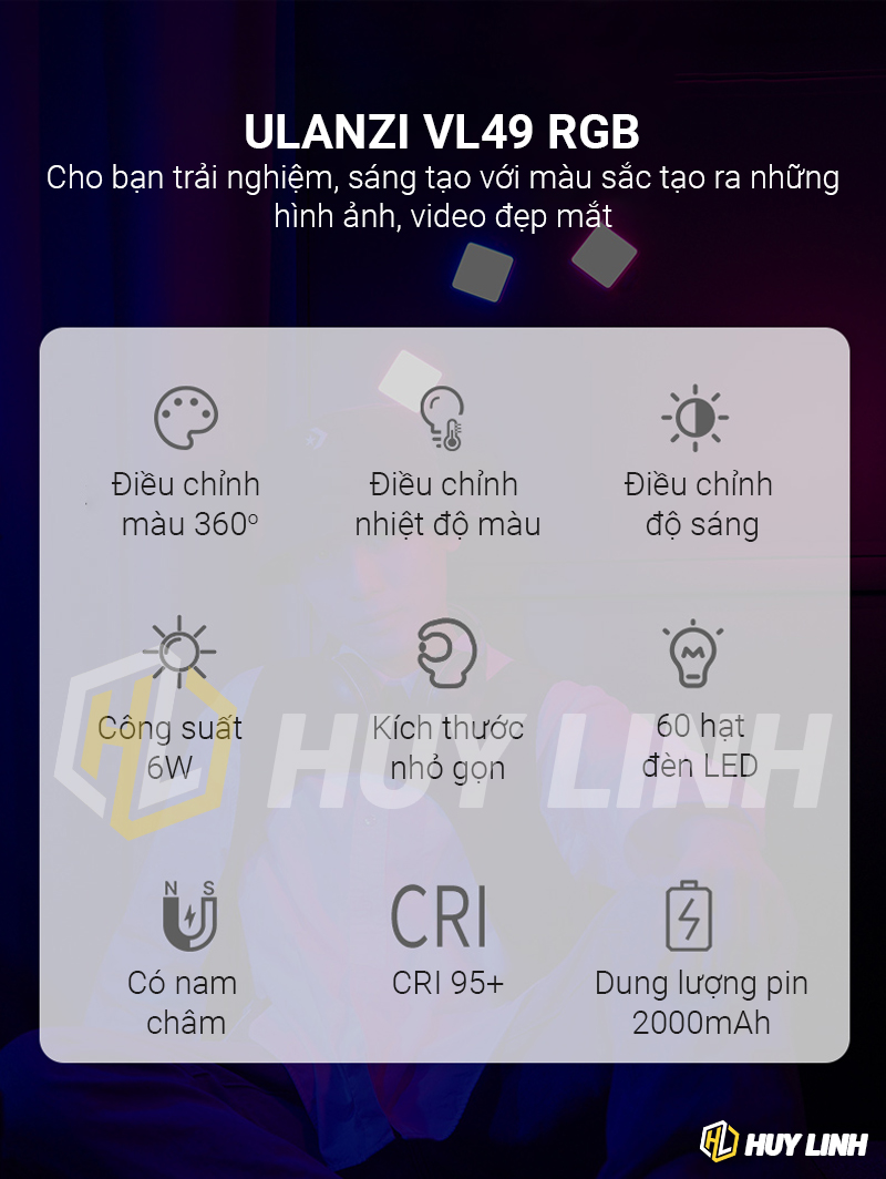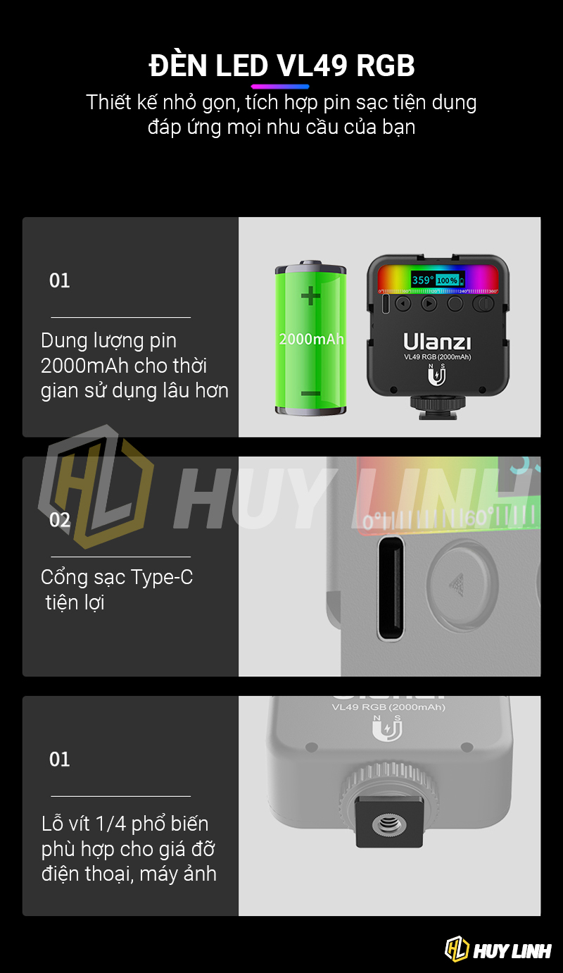 - 1 x Led Ulanzi VL49 RGB pin tích hợp