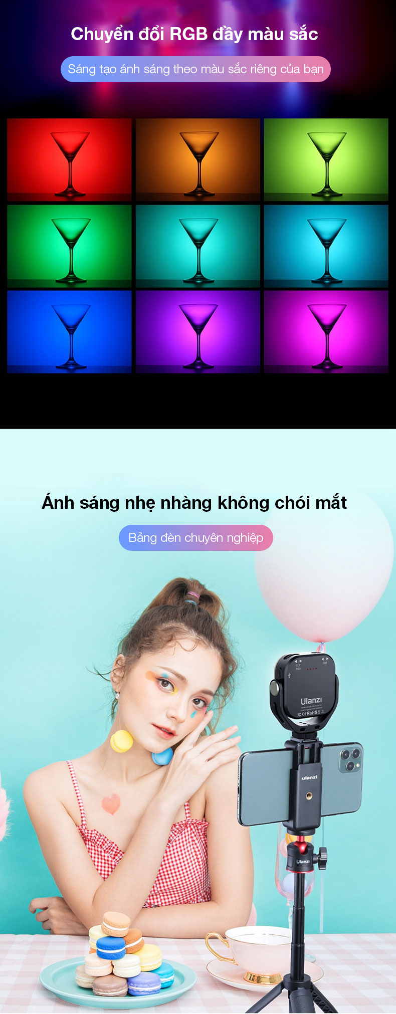 - Chuyển đổi RGB đầy màu sắc sáng tạo ánh sáng theo màu sắc riêng của bạn