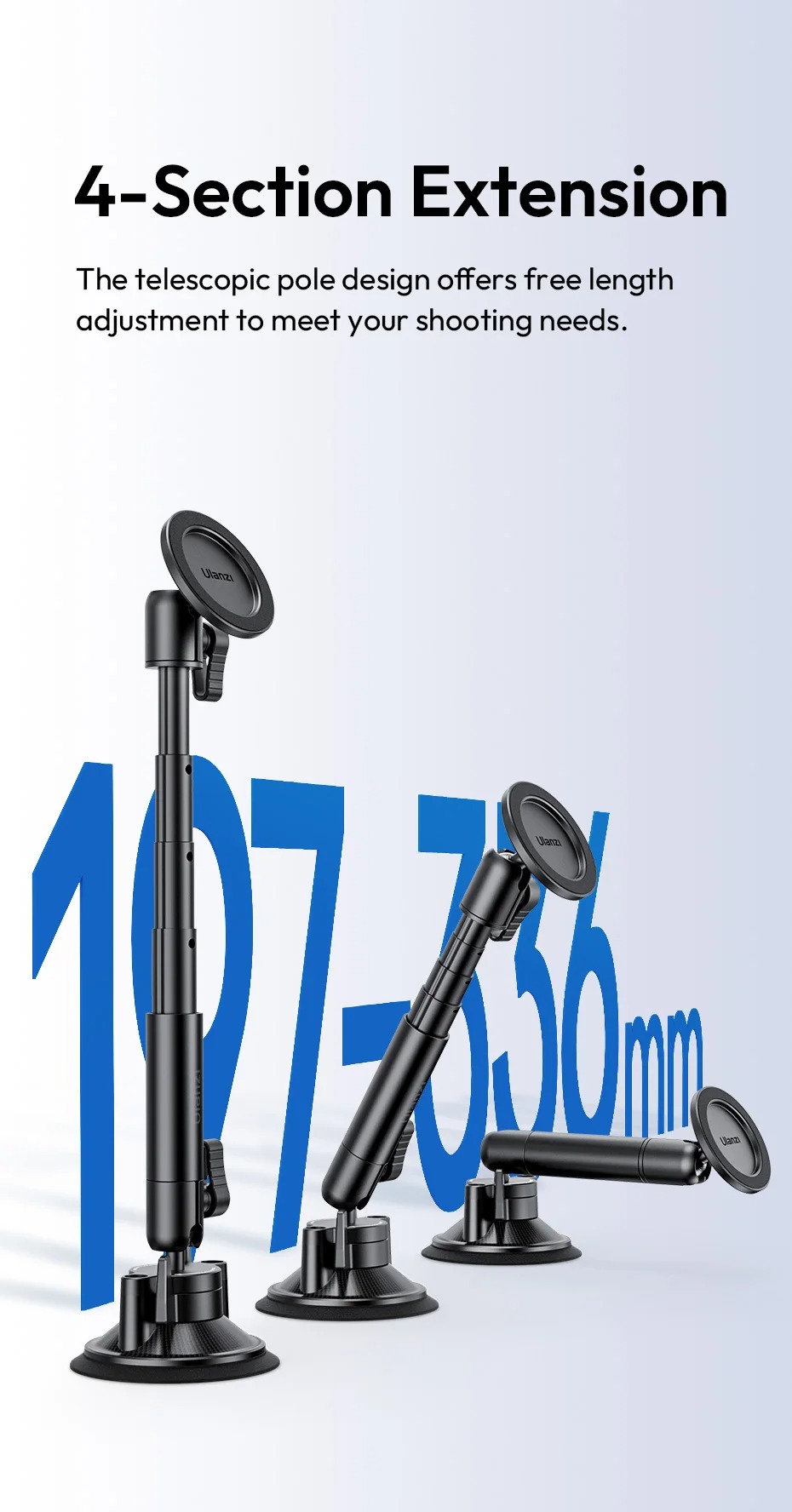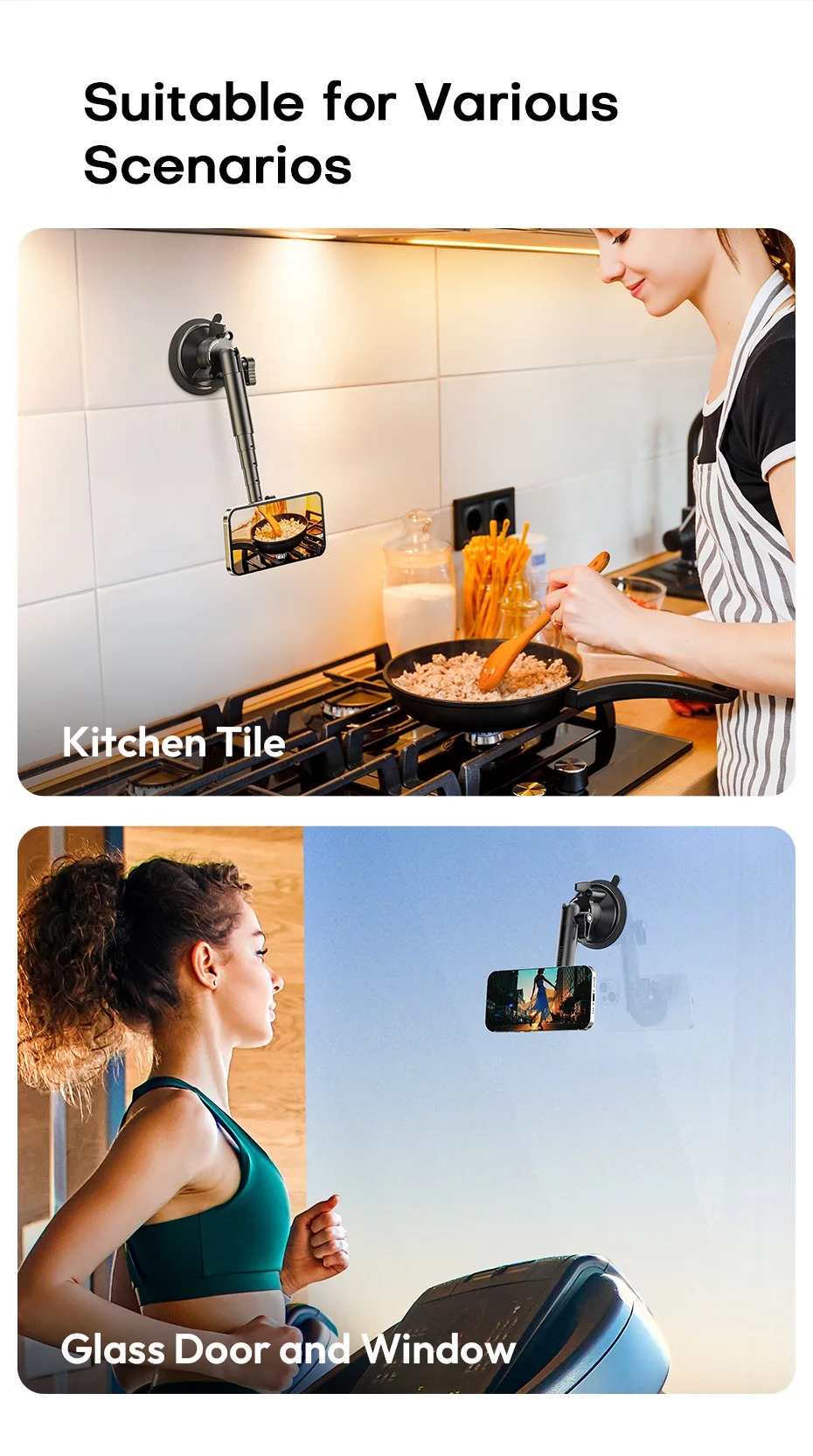 - Dễ dàng chụp từ nhiều góc độ khác nhau bằng cách gắn giá đỡ cốc hút này bên trong hoặc bên ngoài xe của bạn.